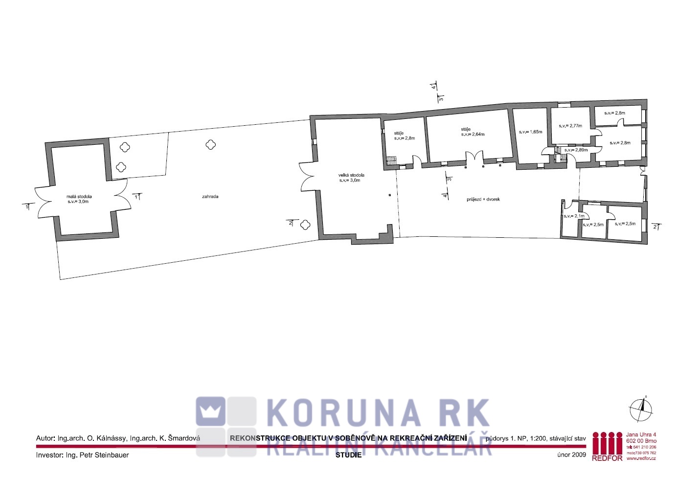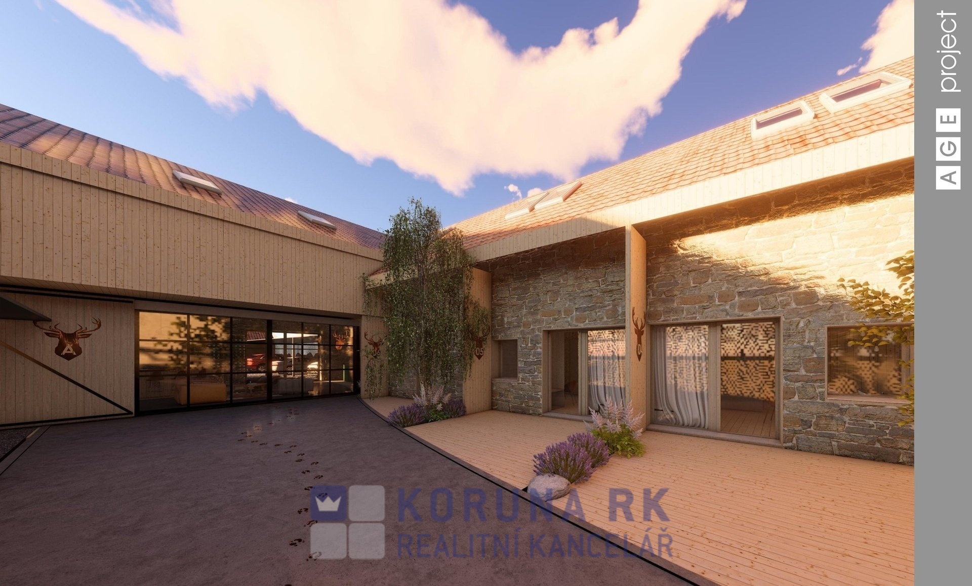 Stávající zemědělská usedlost na poklidné návsi obce Soběnov ve vyhledávané lokalitě mezi velkými lesními celky, na úpatí Slepičích hor s neporušenou přírodou s velkým potenciálem k podnikání. V lokalitě jsou cyklistické i turistické značené cesty. Vyhotovena projektová dokumentace a stavební povolení na projekt penzionu, který zahrnuje 7 apartmánů s vlastním sociálním zařízením, společenskou místnost s kuchyní a barem a parkovacími stáními s možností zastřešení. V části do návsi je pánováno 6 apartmánů, ve střední části ve stávající stodole pak společenská místnost s barem a hernou, v původní maštali wellness. V západní části v zahradě se pak počítá ve stávající kolně s luxusním prostorným apartmánem celkové užitné ploše téměř 140 m2. Prostor zahrady bude využitý k parkování. Stavební práce byly již zahájeny, kdy bylo provedeno statické zajištění některých staveb a provedena výměna střešní krytiny nad částí staveb, jinak jsou stávající budovy v původním stavu s možností úpravy projektu dle vlastních představ. Nemovitost je díky poloze skvělým výchozím bodem pro výlety. V okolí se nachází Slepičí a Novohradské hory, rozhledna Slabošovka, Soběnovská přehrada u Kaplice, říčka Černá s přehradní nádrží Hradiště, rozhledna Hradišťský vrch, zřícenina hradu Pořešín a Sokolčí atd. Uvedené plochy jsou dle studie.