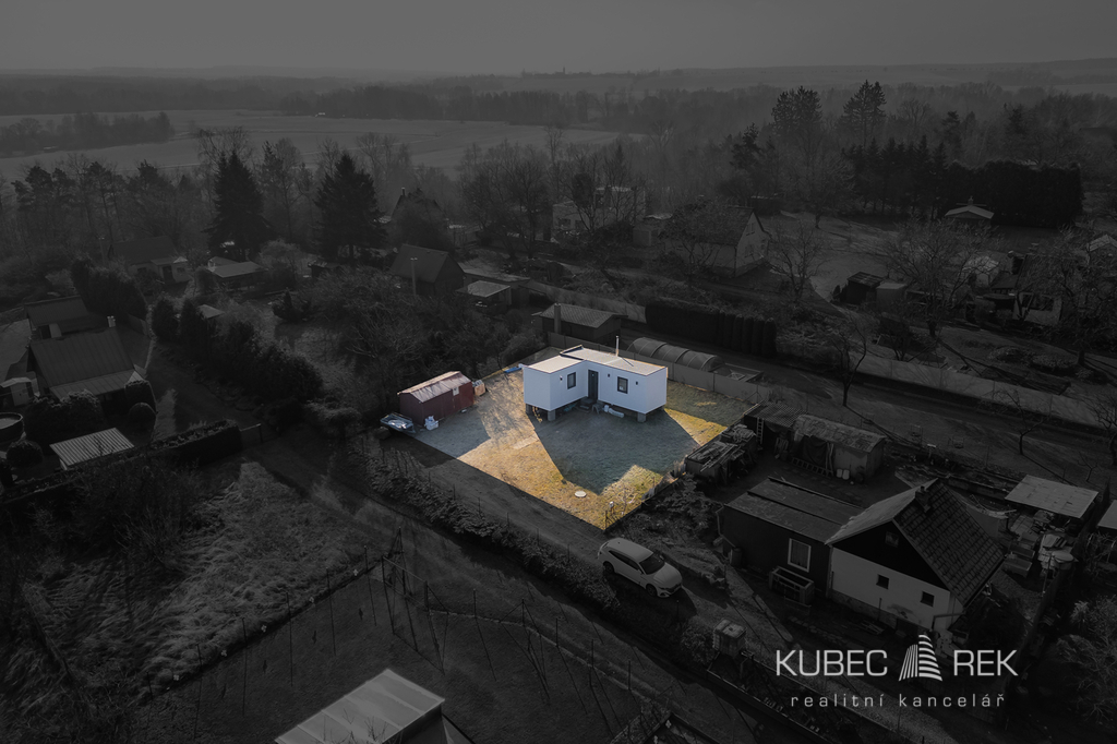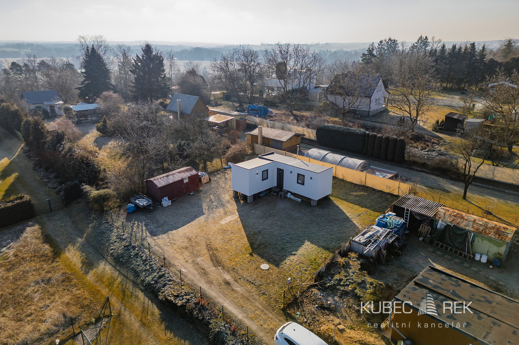 Dům stojí na pozemku o rozloze 396 m² a disponuje veškerým zázemím pro pohodlný pobyt. Voda je zajištěna vlastním vrtem o hloubce 42 metrů s vydatností 600 litrů za den, odpady jsou svedeny do jímky o objemu 6 m³. Vytápění domu je řešeno automatickým kotlem na pelety, který zaručuje nízké provozní náklady – pouhých 4 000 Kč ročně. O teplou vodu se stará bojler o objemu 80 litrů. Součástí nabídky je také dřevěná terasa o rozměru 3 × 3 metry, která je připravena k instalaci a následně nabídne ideální prostor pro ranní kávu, večerní posezení nebo letní grilování.