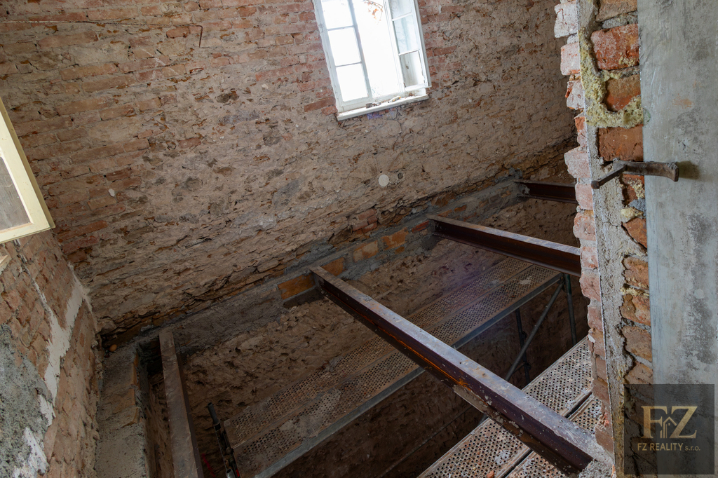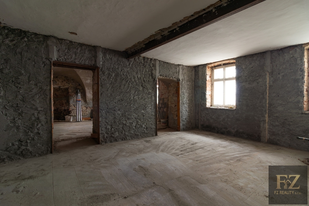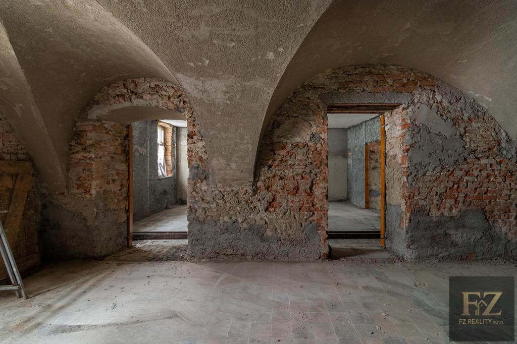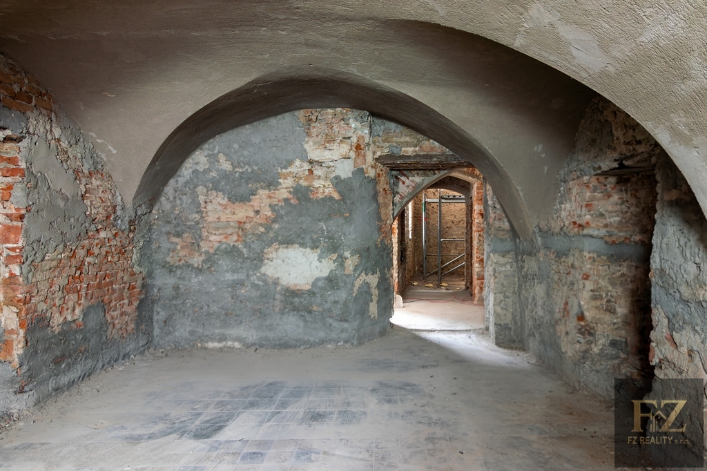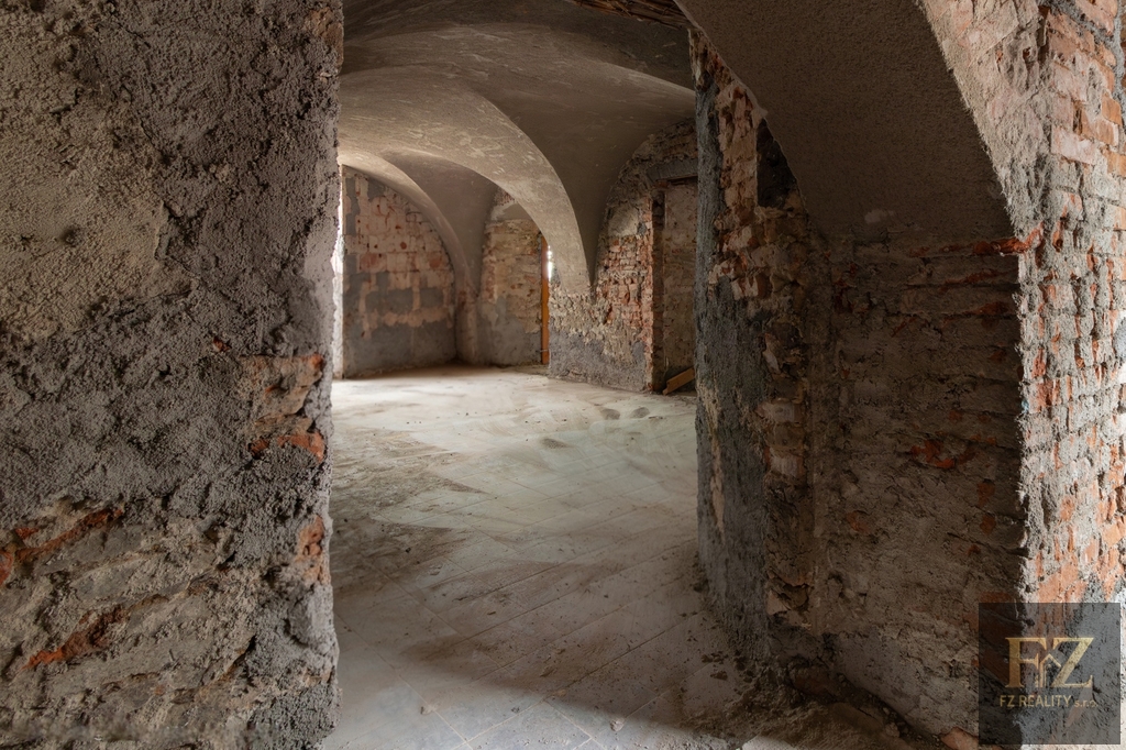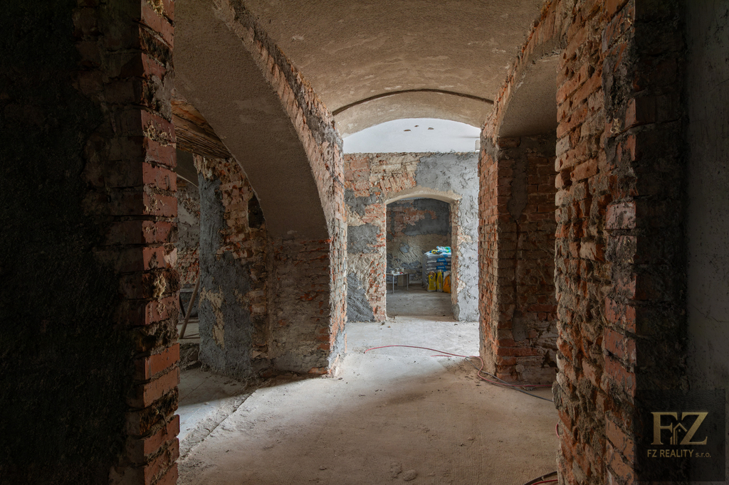 Rekonstrukce je již zahájena a na objektu se stále pracuje. Veškeré klenby v přízemí jsou nově omítnuty a hotové jsou i některé omítky stěn. To dává budoucímu projektu jasný náskok. Kompletní projektová dokumentace je k dispozici a zároveň je možné případnou bytovou variantu řešit formou změny stavby před dokončením, což otevírá prostor pro úpravu záměru dle preferencí investora a aktuální poptávky.