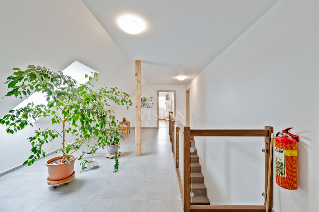 V přízemí se nachází prostorný obývací pokoj spojený s kuchyní, tvořící srdce celého domu, pracovna, ideální pro domácí kancelář, dále ložnice a koupelna. V druhém nadzemním podlaží rodinného domu se nachází dva prostorné dětské pokoje, koupelna, relaxační místnost určená k odpočinku, dále komfortní ložnice a rozsáhlá místnost s potenciálem pro vybudování dalších dvou pokojů podle potřeb nového majitele – ideální například pro rozšíření obytné části, hernu nebo pracovnu. Toto podlaží tak nabízí velkorysý prostor pro pohodlné rodinné bydlení s možností dalšího rozvoje a přizpůsobení dle individuálních představ.