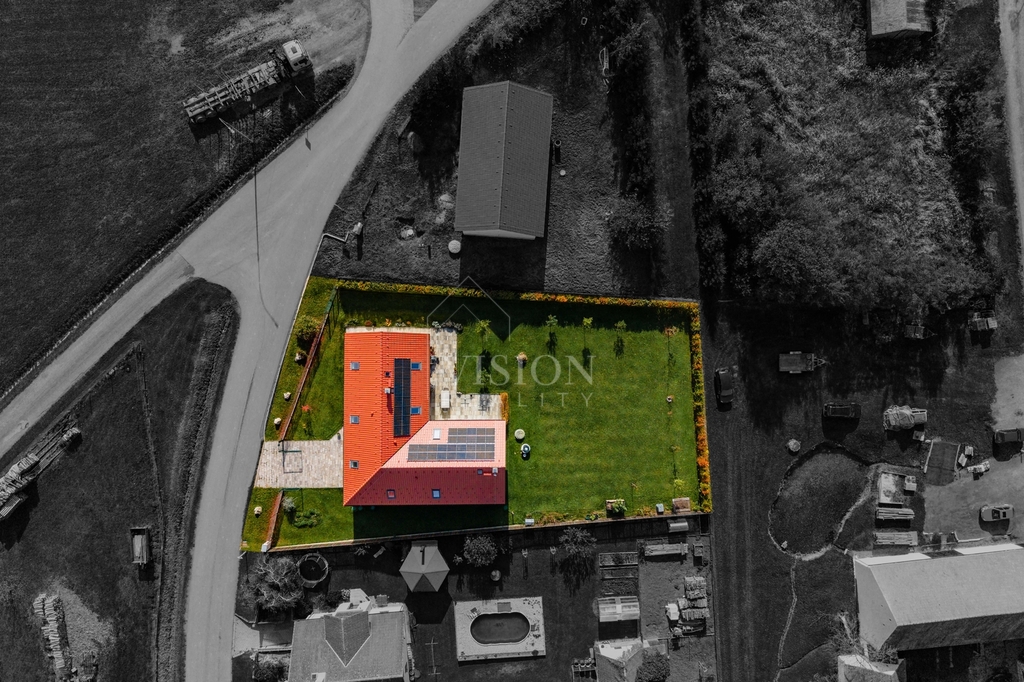 Zdrojem vody je vrtaná studna, která zaručuje nezávislost a dostatek vody po celý rok. O bezpečí obyvatel se stará bezpečnostní systém Jablotron, který poskytuje maximální ochranu a klid. Tento dům představuje ideální kombinaci moderních technologií, pohodlí a úsporného provozu – perfektní volbu pro ty, kteří hledají kvalitní, bezpečné a energeticky soběstačné bydlení.