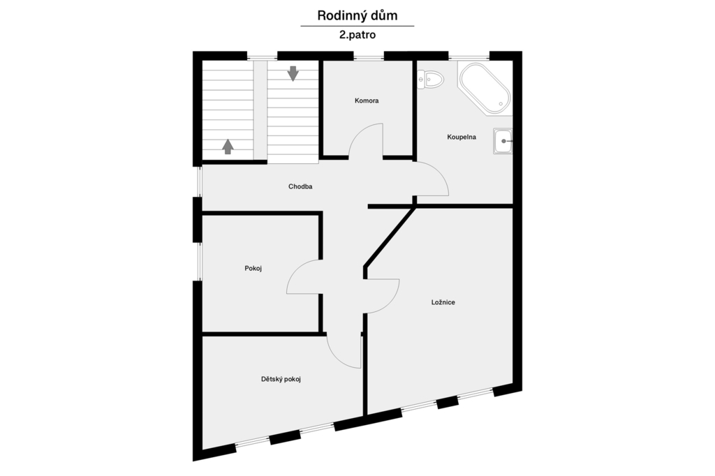 Ve třetím podlaží jsou situovány tři samostatné ložnice, koupelna s vanou, toaletou a praktická technická místnost.