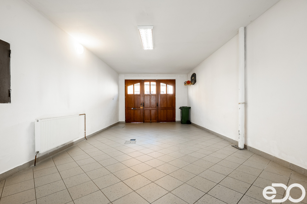 V přízemí se nachází nebytový prostor o výměře cca 55 m2, který je nyní pronajímán a generuje pravidelný příjem. Dále je zde garáž, dílna a technická místnost se studánkou. Voda ze studánky je využívána jako užitková pro splachování WC.