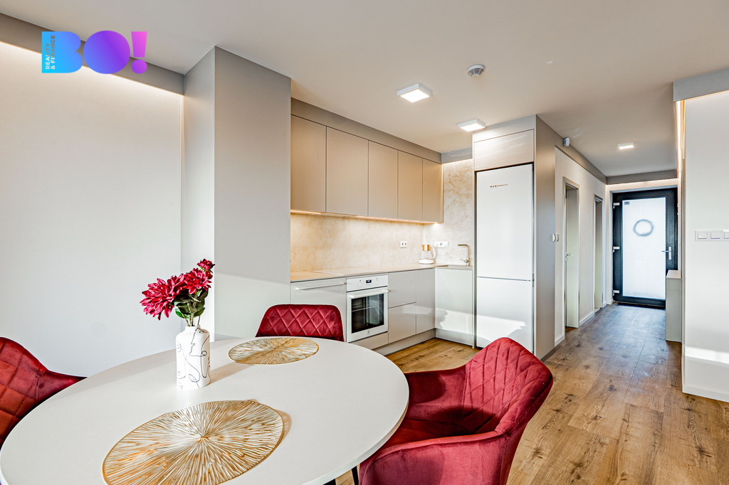 BO! Reality vám s velkou radostí představuje k pronájmu zcela nový apartmán o dispozici 2+kk, nacházející se v srdci Horních Soběšovic, jen pár kroků od přehrady.