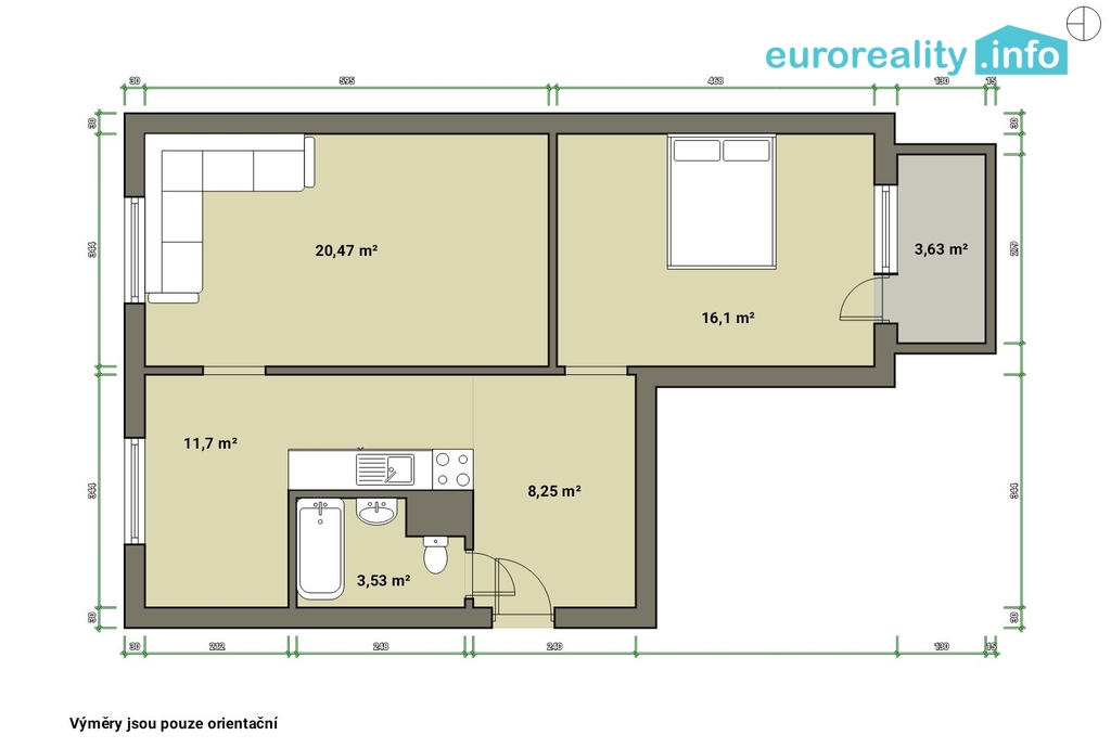 Dispozice bytové jednotky je velmi funkční – prostorný obývací pokoj, samostatná ložnice, kuchyně s místem pro jídelní kout a koupelna s vanou a toaletou. Byt je v udržovaném stavu a nabízí ideální příležitost jak k okamžitému bydlení, tak k případné modernizaci dle vlastních představ.