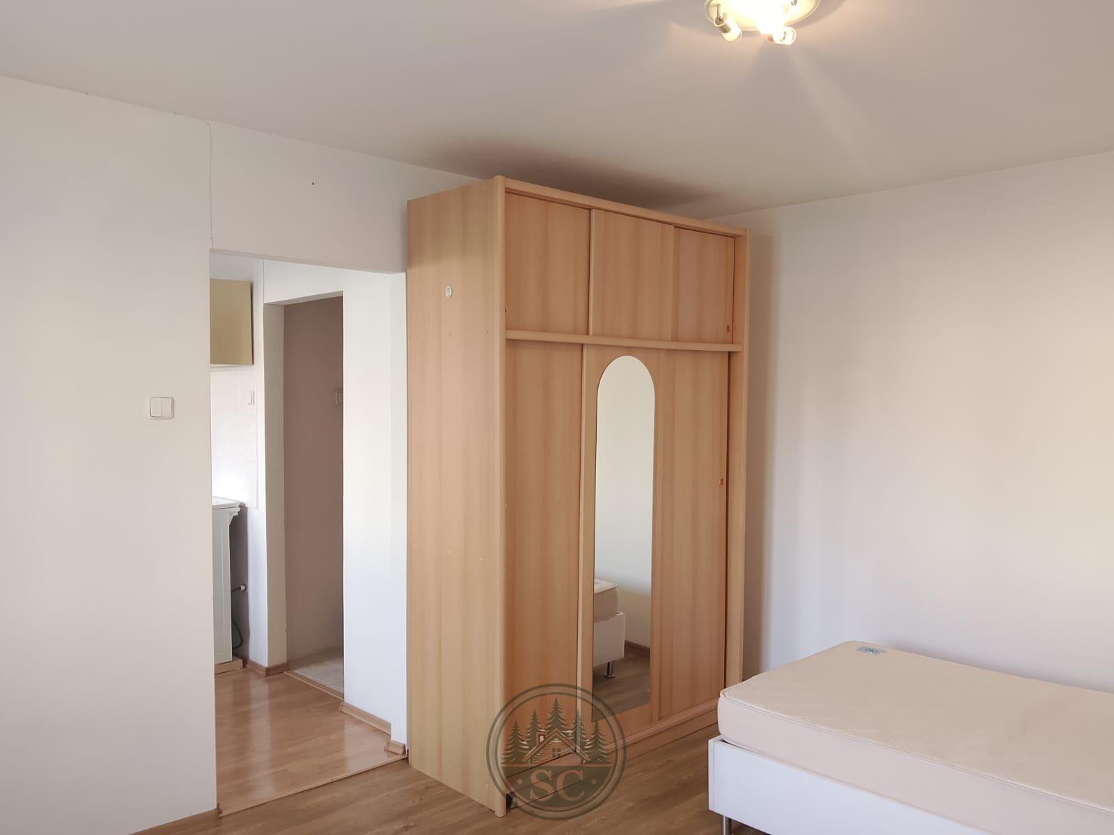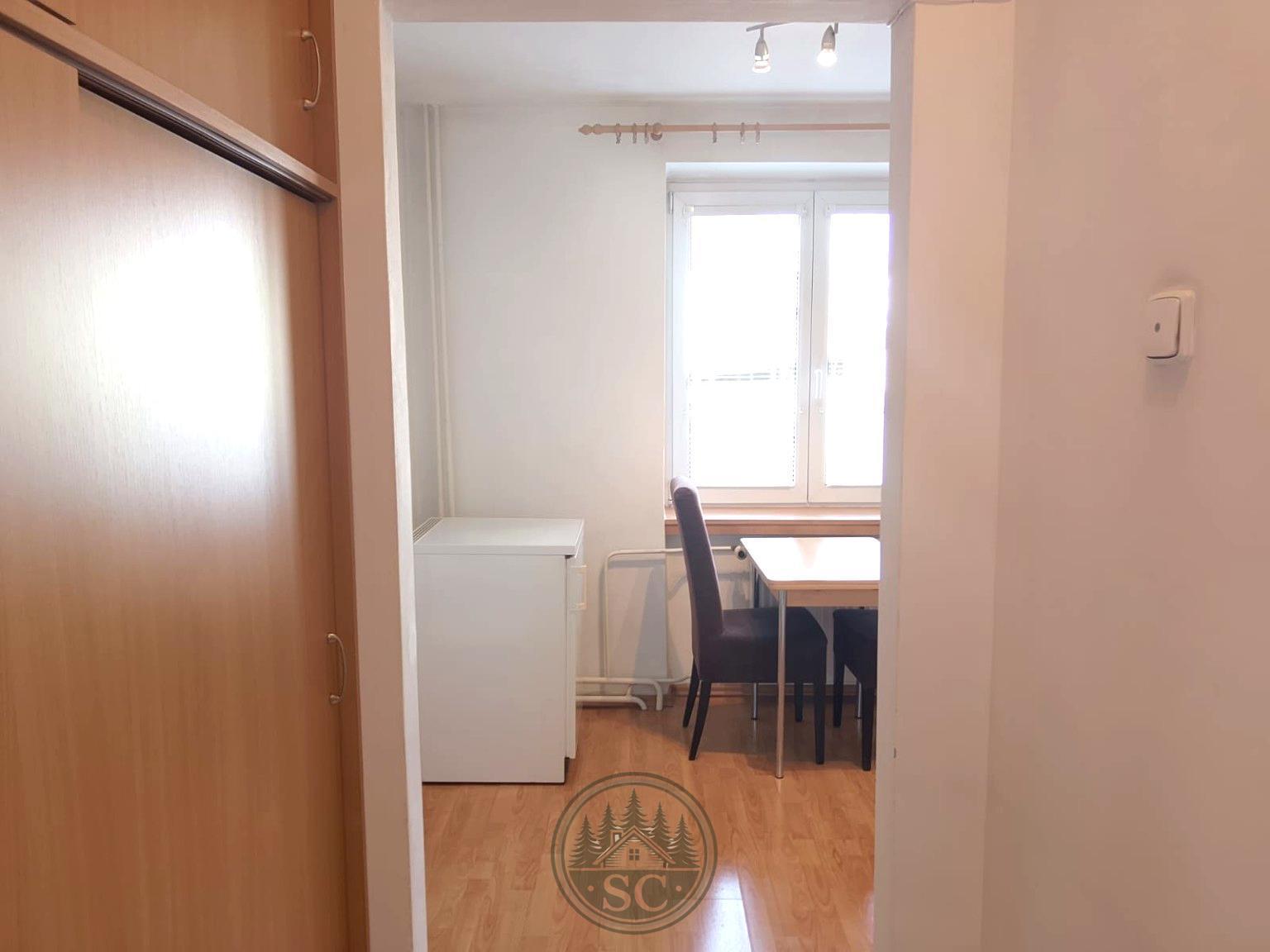 Je částečně vybaven - k dispozici je kuchyňská linka s lednicí a sporákem, jídelní stůl se židlemi, v předsíni vestavná skříň a v pokoji postel a skříň.