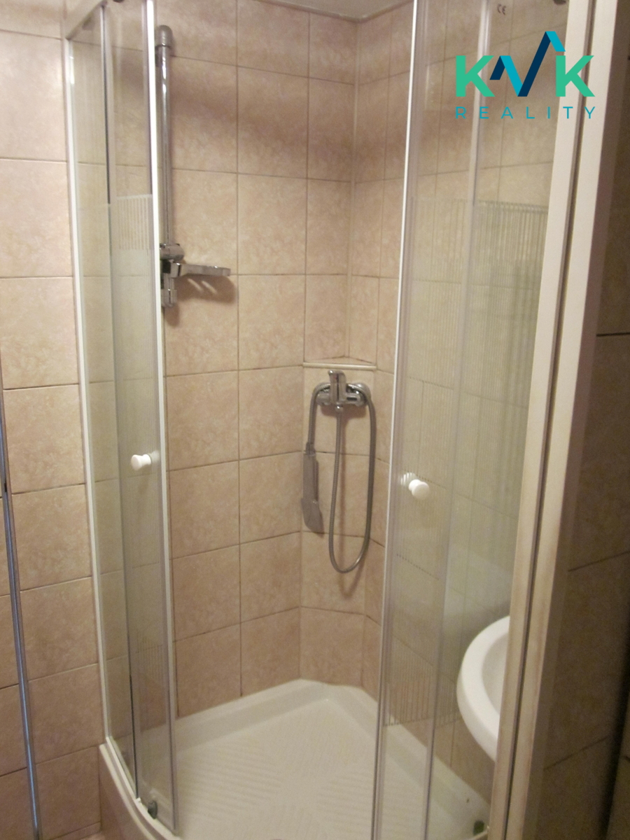 Nabízíme Vám k pronájmu byt 1 + 1, o velikosti 35,50 m² v osobním vlastnictví. Byt je ve standartním stavu, má plastová okna a součástí bytu je i atypická kuchyňská linka. Bytové jádro je obložené dlažbou a dřevěnými obklady. Na podlaze je položeno PVC - obývací pokoj, dlažba je na chodbách, v kuchyni, a v koupelně a na toaletě. Samostatná koupelna je osazena zcela novou sprchovou zástěnou s pojezdovými zavíracími dveřmi, umyvadlo se skříňkou, zásuvkou a světlem, včetně WC. K bytu náleží balkon v mezipatře naproti bytu. Byt se nachází v 5 NP pětipatrového domu s výtahem, na sídlišti Michal v Sokolově. Nájemné : 7 000,- Kč + záloha na služby pro 1 osobu 3 500,-( teplo, TUV, SV, správa, odvoz odpadu, osvětlení spol. prostor, úklid domu ). Vratná kauce ve výši 14 000,- Kč + poplatek RK ve výši 7 000,- Kč. Celkem tedy měsíční platby 10 500,- Kč pro 1 osobu bez elektrické energie. Byt je volný ihned. Lokalita je v místě s veškerou občanskou vybaveností.