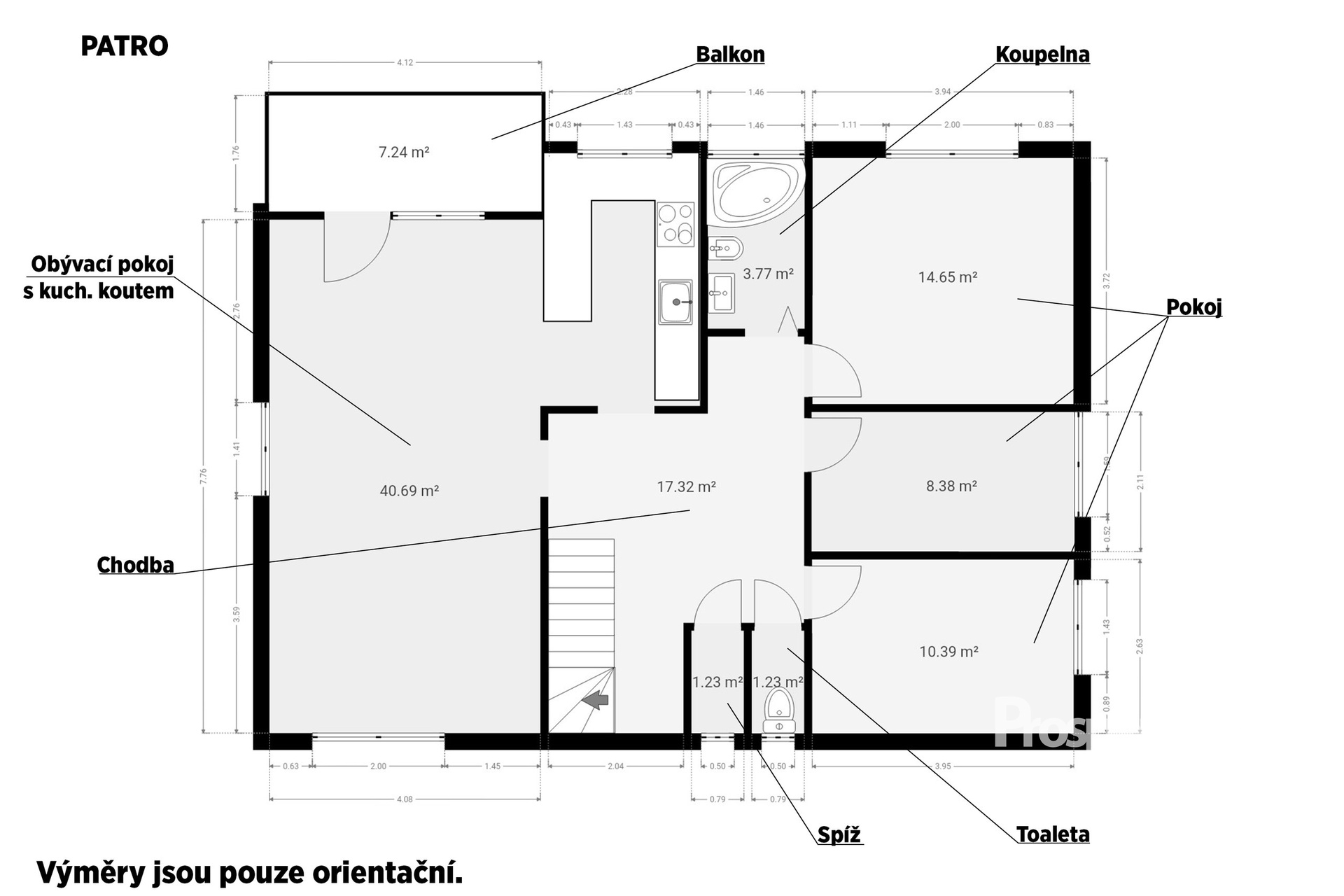 ▸ Patro - 4 pokoje, kuchyňský kout, koupelna, toaleta a spíž (4+kk+balkón)