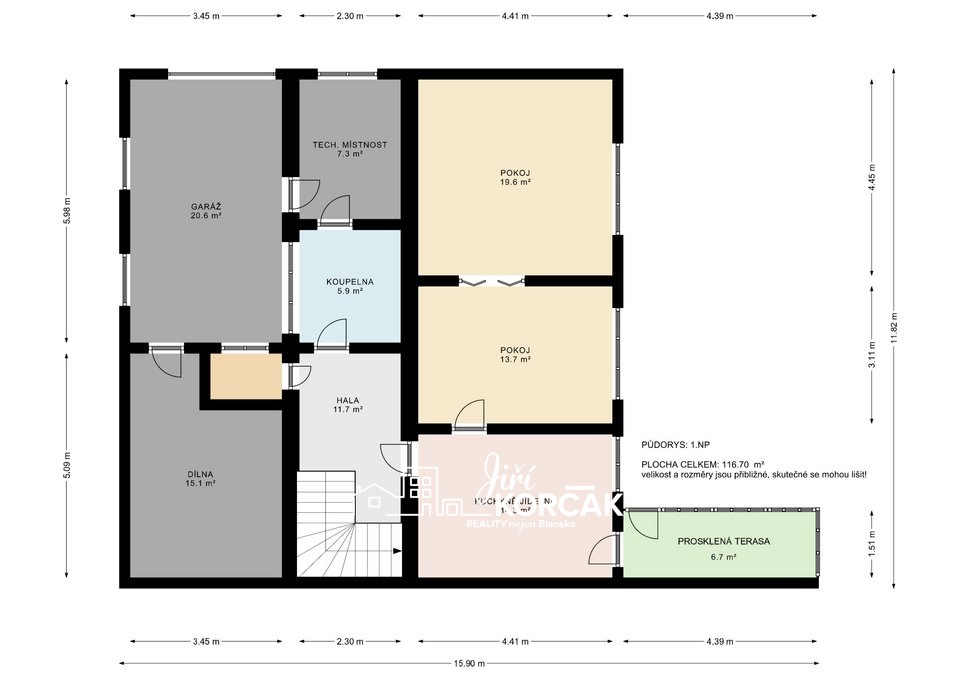 Tento prostorný dům s garáží se nachází na pozemku s výměrou 179 m² a k tomu má ještě 90 m2 zahrádky.