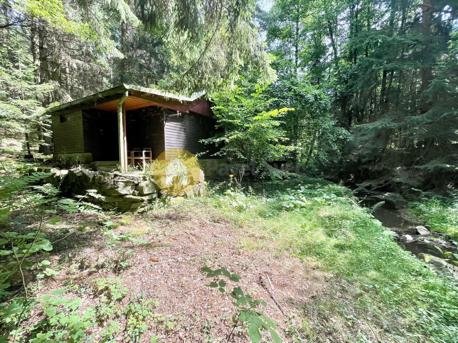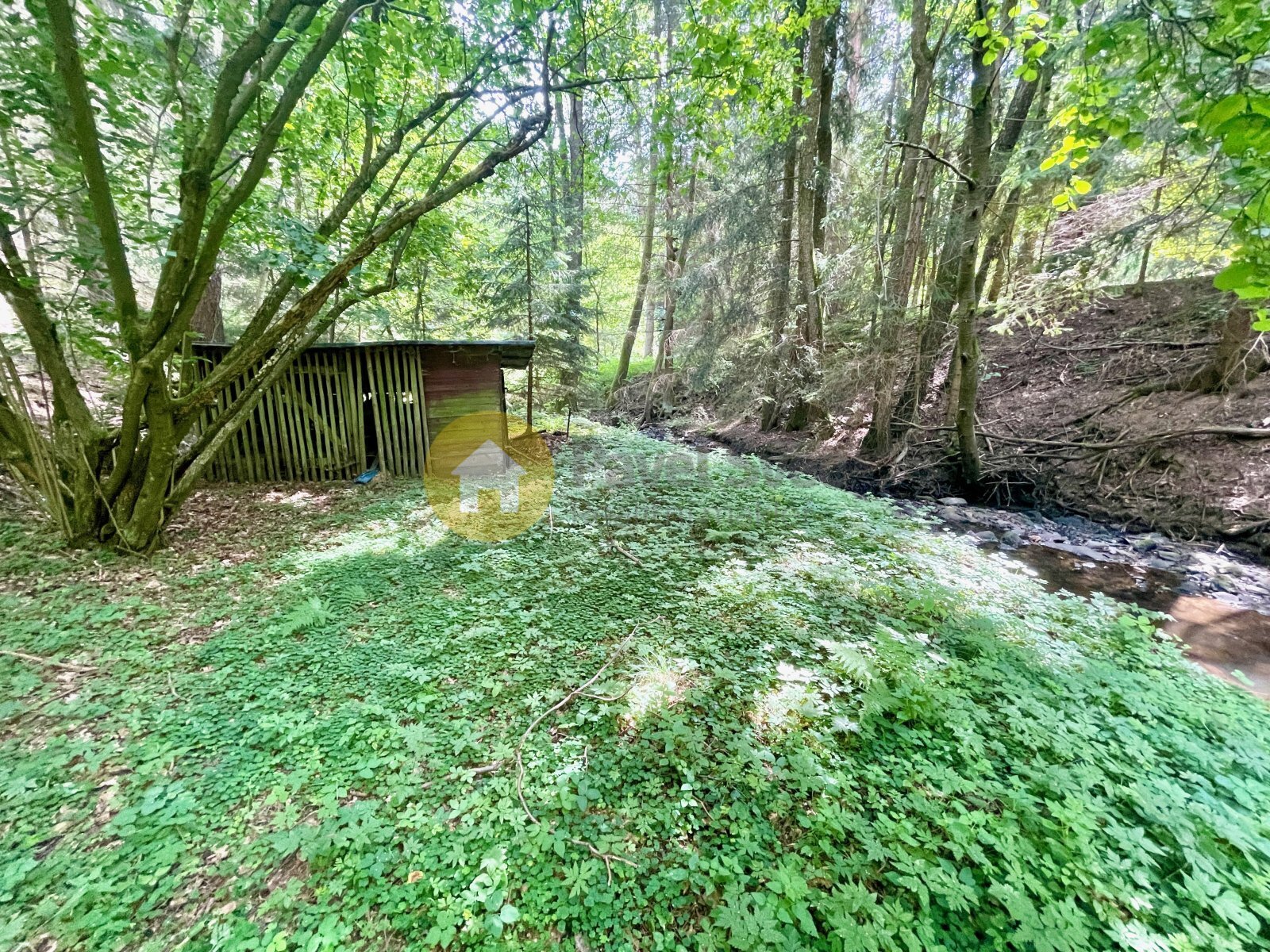 V blízkosti u potoka je k užívání kolna.