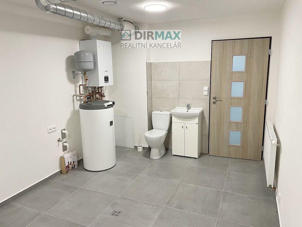 V této velké místnosti je toaleta, umyvadlo, přípojky na pračku a sušičku a prostor na umístění sauny i vířivky. Je provedeno odvětrání, vzduchotechnika. Vlastní vodoměr je v této místnosti. V každém patře domu je vlastní toaleta i umyvadlo!