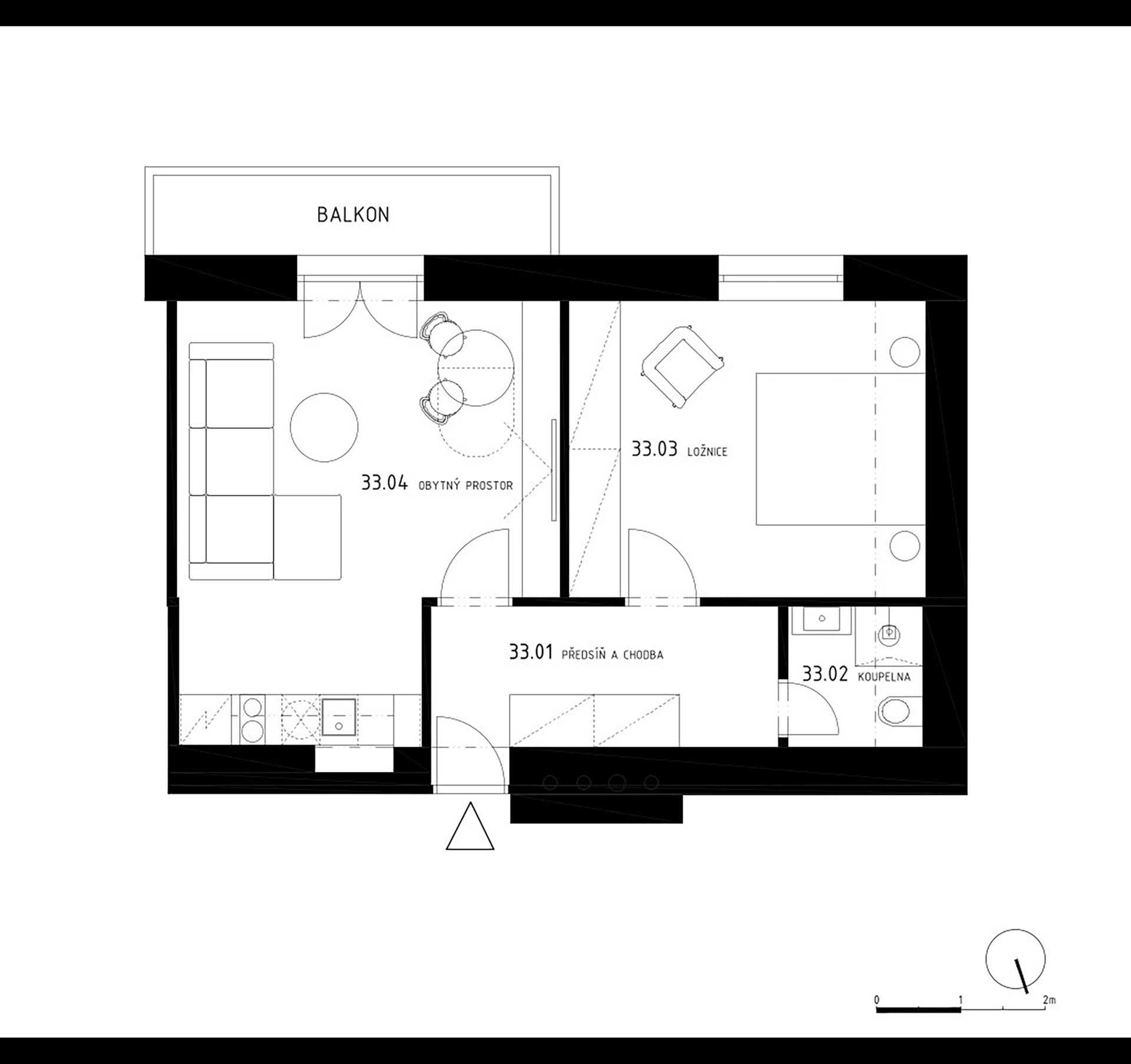 Prodej apartmánu č. 33, 2+kk, 52,9 m² ve stavu FIT OUT