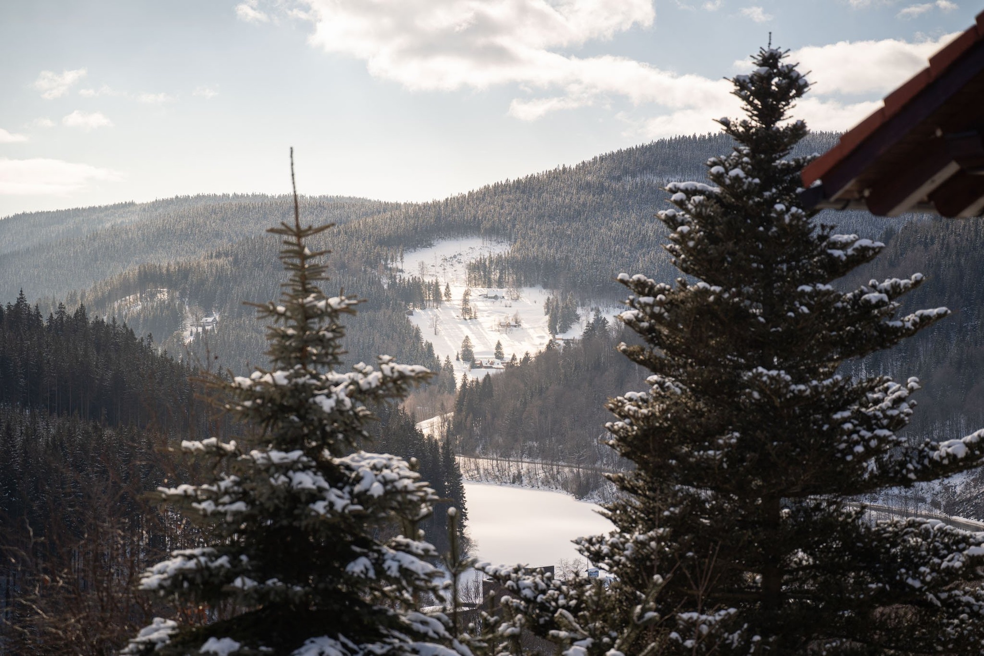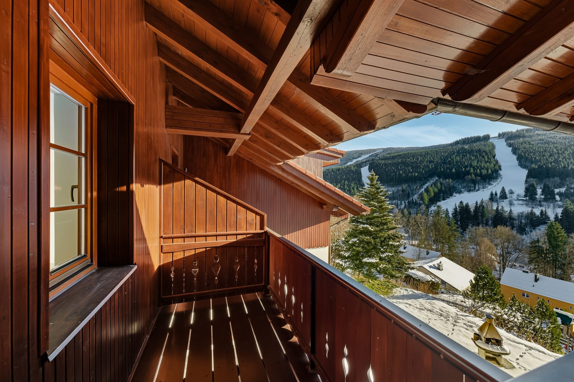 Slunečný svah se nachází na jižním svahu nad centrem Špindlerova Mlýna. Díky nadmořské výšce přes 700 m n. m. nabízí nádherné výhledy na údolí i okolní hřebeny. V pěší vzdálenosti je centrum města s restauracemi, obchody a sjezdovkami, včetně přímého napojení na lyžařský areál. Lokalita je ideální nejen pro zimní sporty, ale i letní turistiku, cyklistiku a celoroční relaxaci v přírodě.