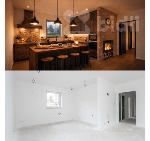 Dům je prodáván ve stavu před dokončením interiéru. Cena nezahrnuje kuchyni, zařizovací předměty, podlahy, interiérové dveře, obklady ani dlažby, aby si nový majitel mohl interiér dokončit dle vlastního vkusu a rozpočtu.