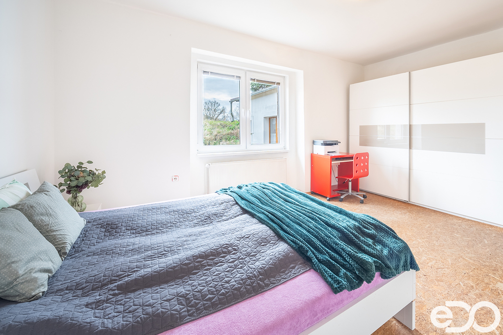 V patře se nachází tři velké místnosti – ložnice, dětský pokoj a další obývací pokoj. Nechybí ani menší úložný prostor ve druhém nadzemním podlaží.