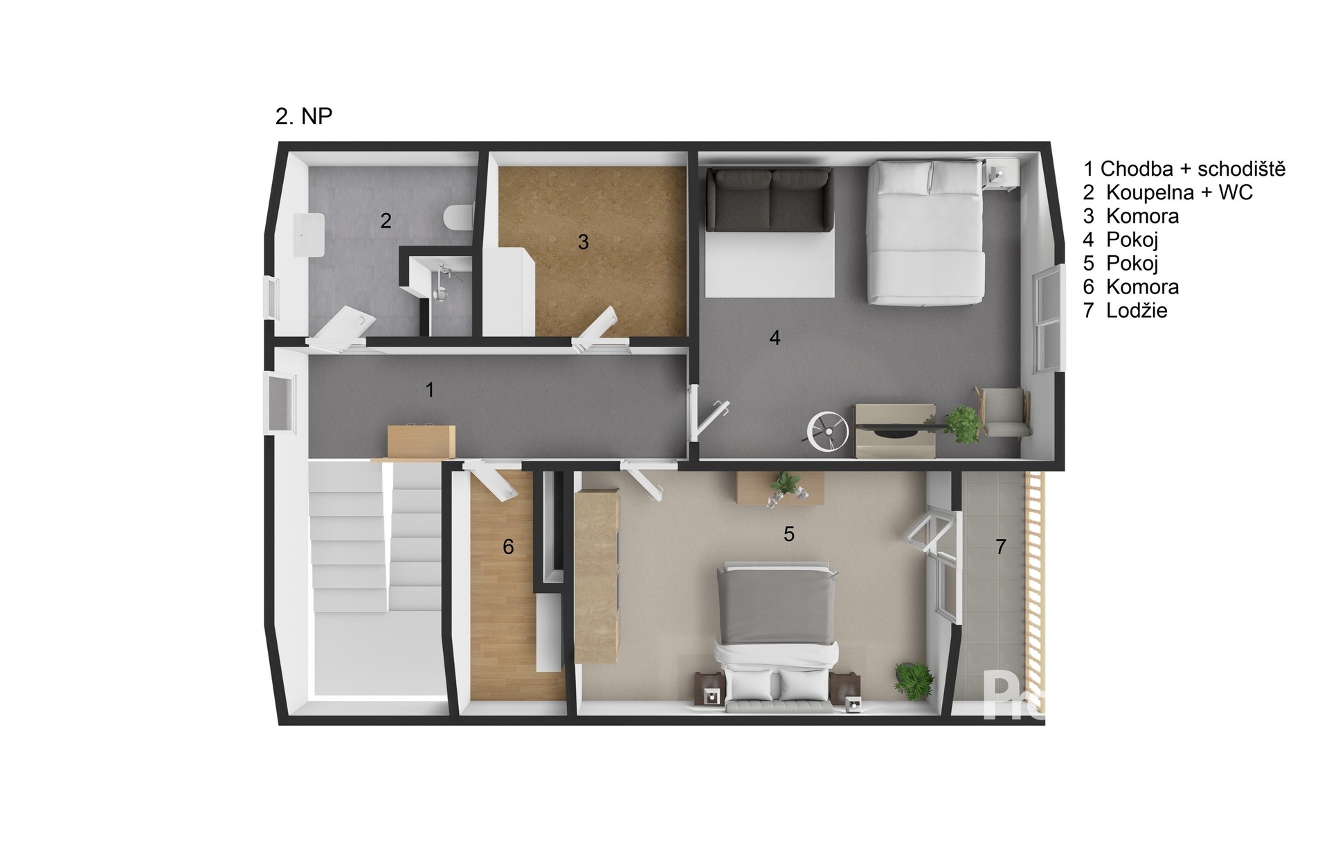- 2 samostatné pokoje, koupelna s WC (samotný sprchový kout je před rekonstrukcí), 2 odkládací místnosti