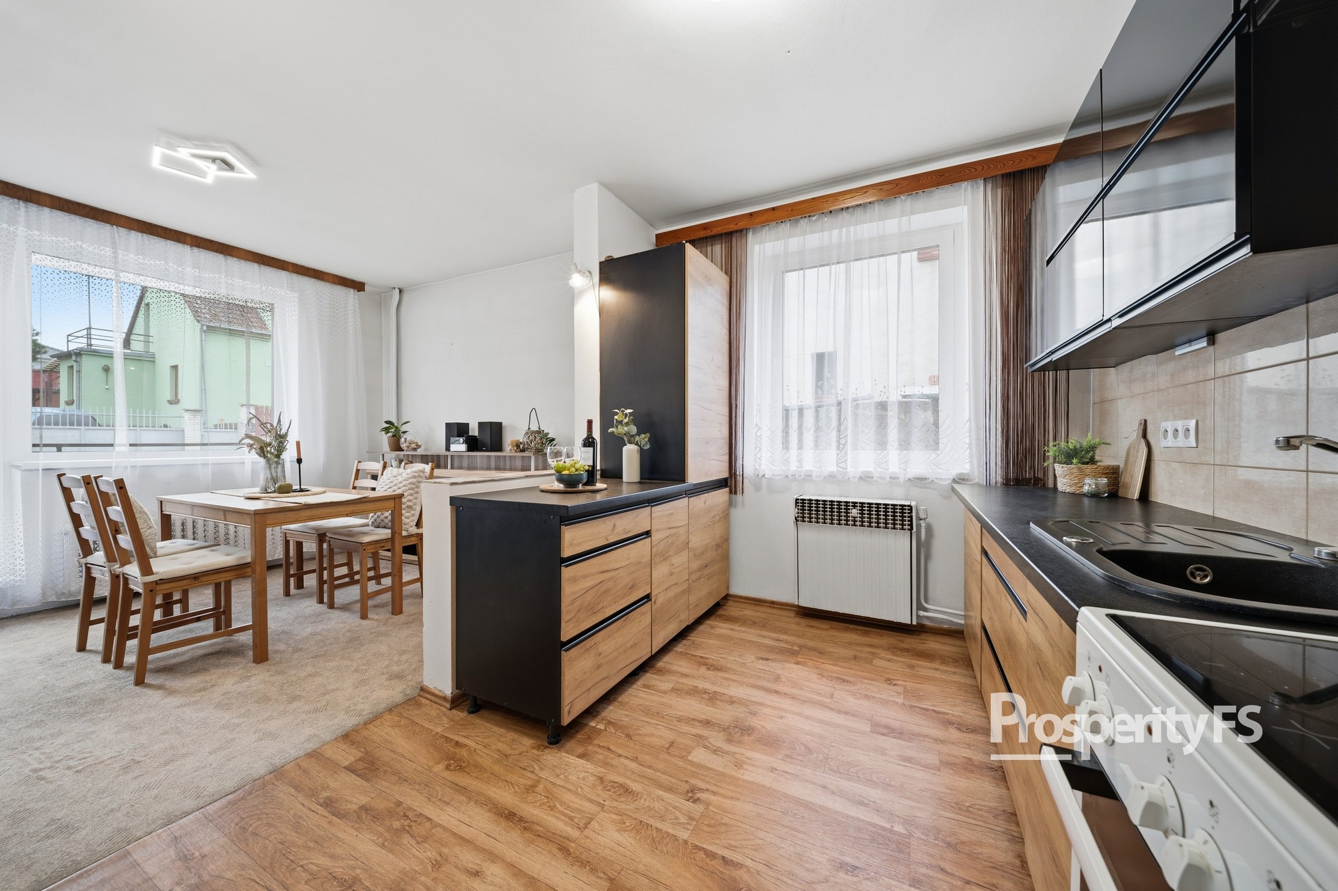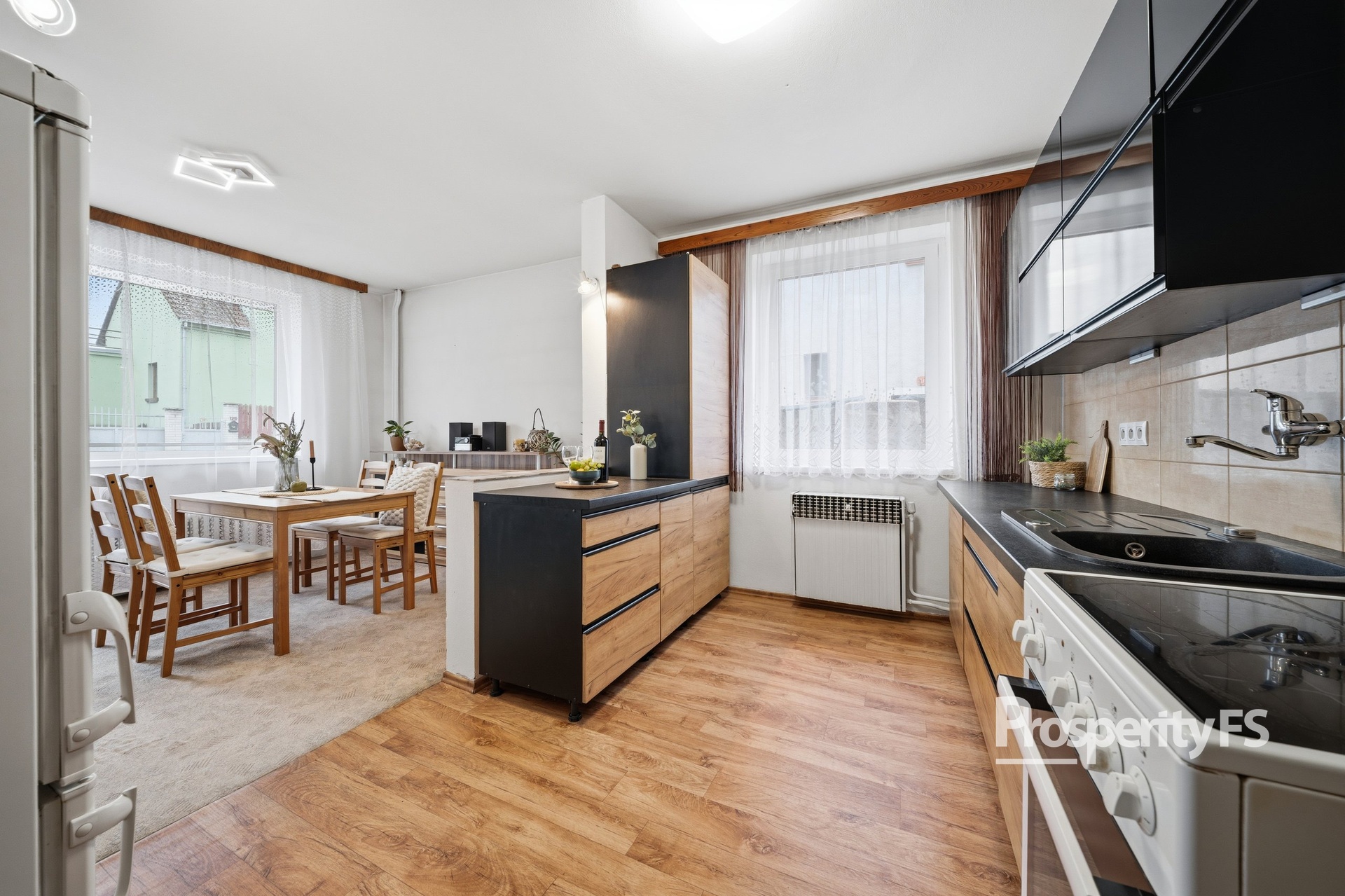 okna: většinou plastová s trojskly (výměna 2025), částečně původní