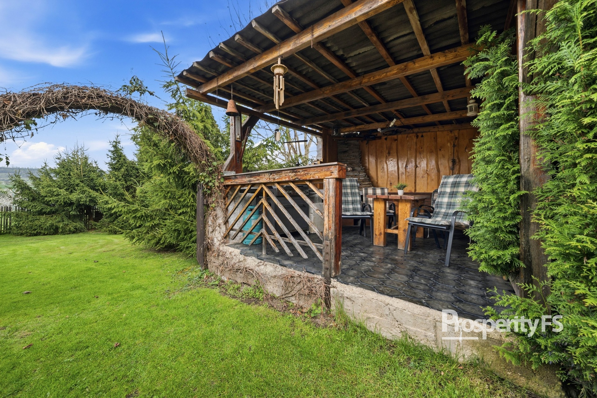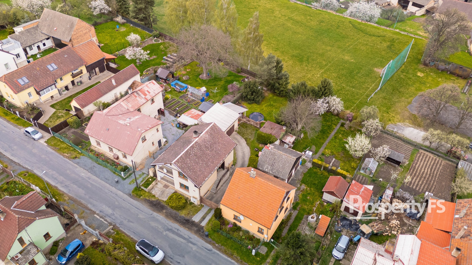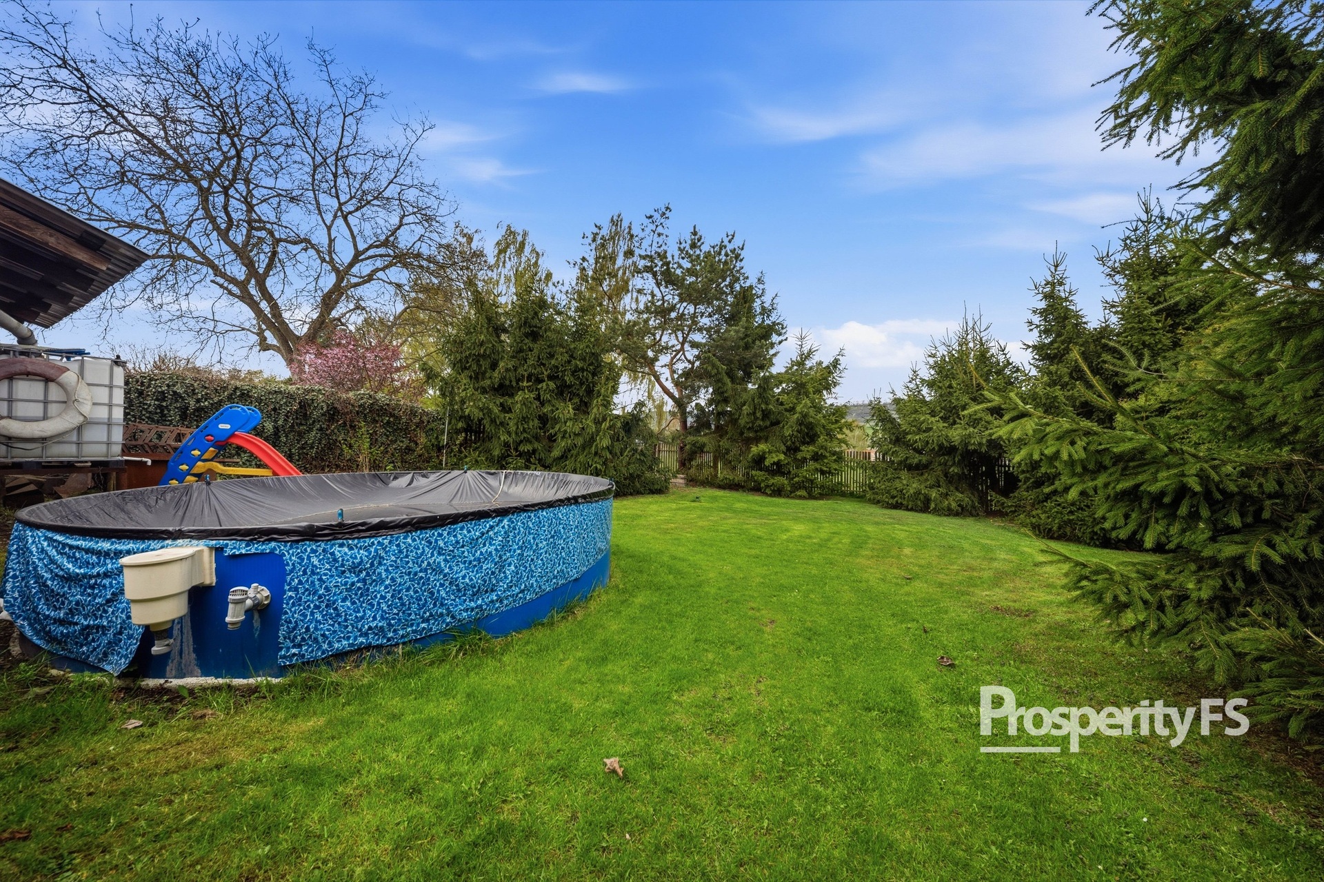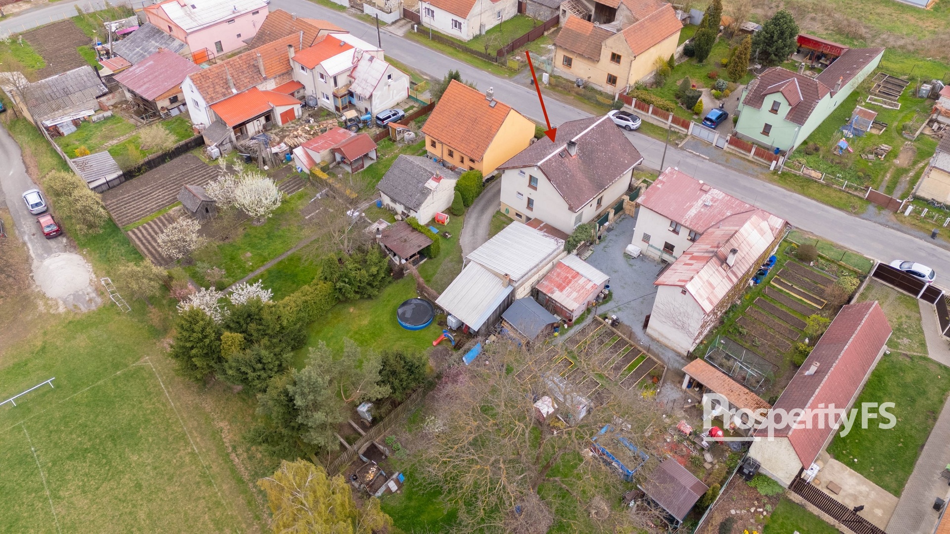 Dům se nachází na pozemku o výměře 615 m², samotná zahrada je situovaná za domem, což zajišťuje dostatek klidu a soukromí. Najdete zde zděnou pergolu - ideální pro trávení volného času, menší bazén, garáž a další vedlejší stavby včetně zděné stodoly.