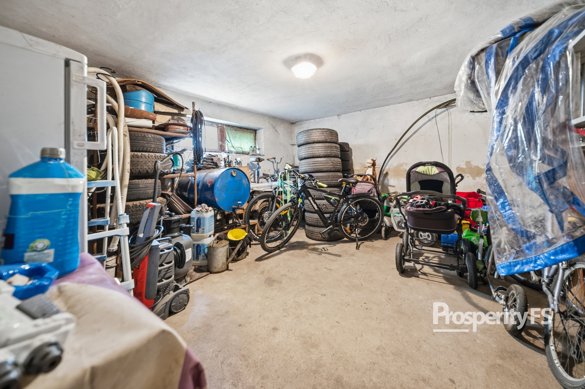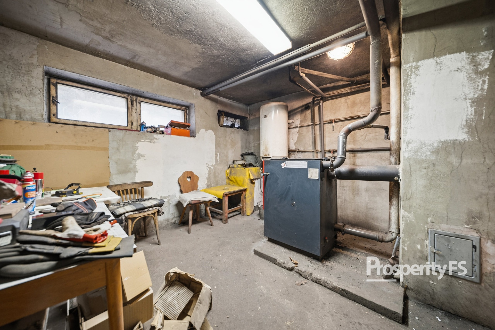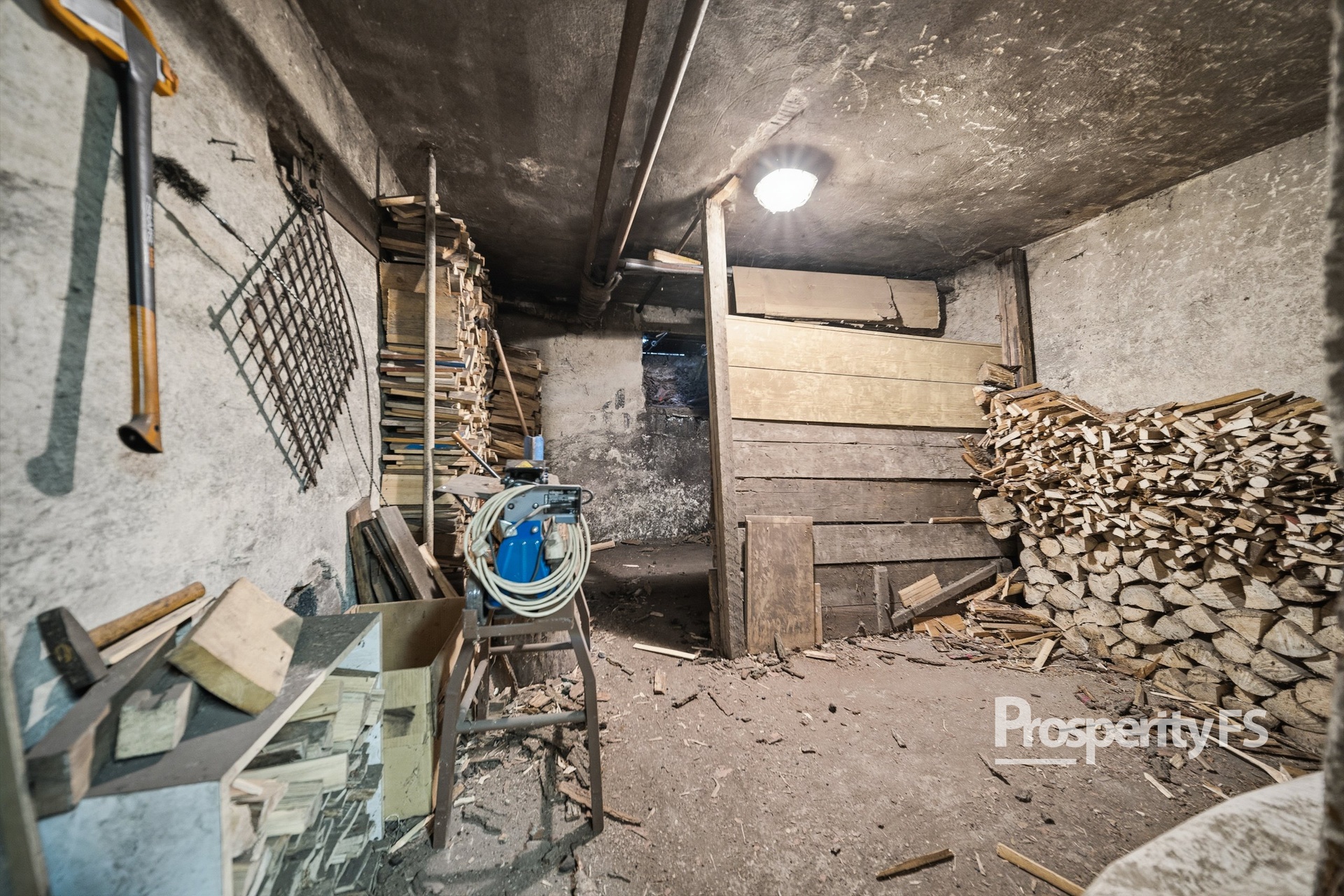 Součástí domu je půda a plně podsklepený prostor, kde se nachází několik místností využitelných jako dílna, sklad či technické zázemí. Ve sklepě je umístěn kotel na tuhá paliva, elektrokotel a elektrický bojler.