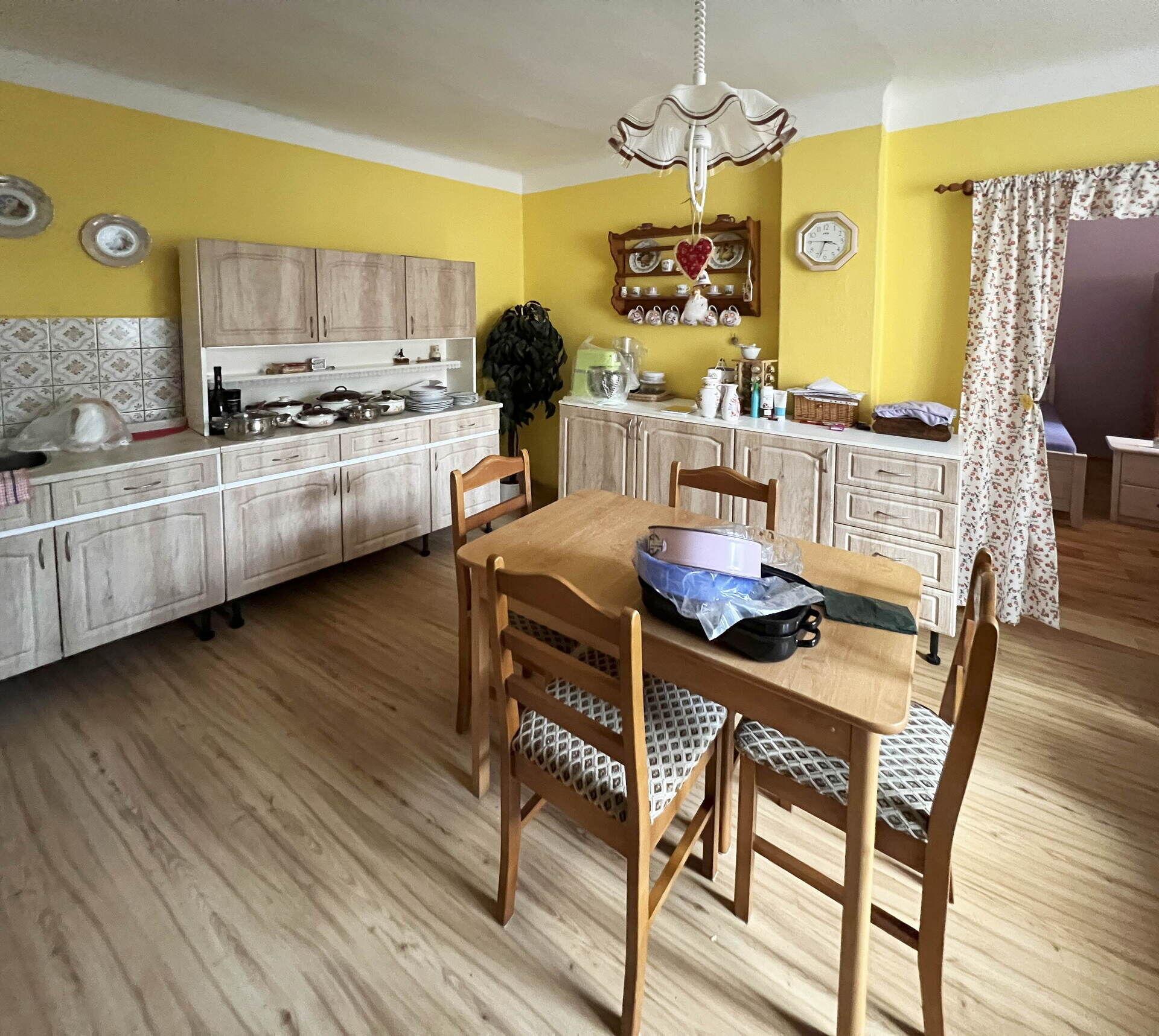 Velkým benefitem je samostatný menší dům (tzv. vejminek) o dispozici 2+kk přímo na pozemku. Je plně funkční, napojený na vodu i vytápění, a nabízí široké možnosti využití – od vícegeneračního bydlení přes pronájem až po podnikání.