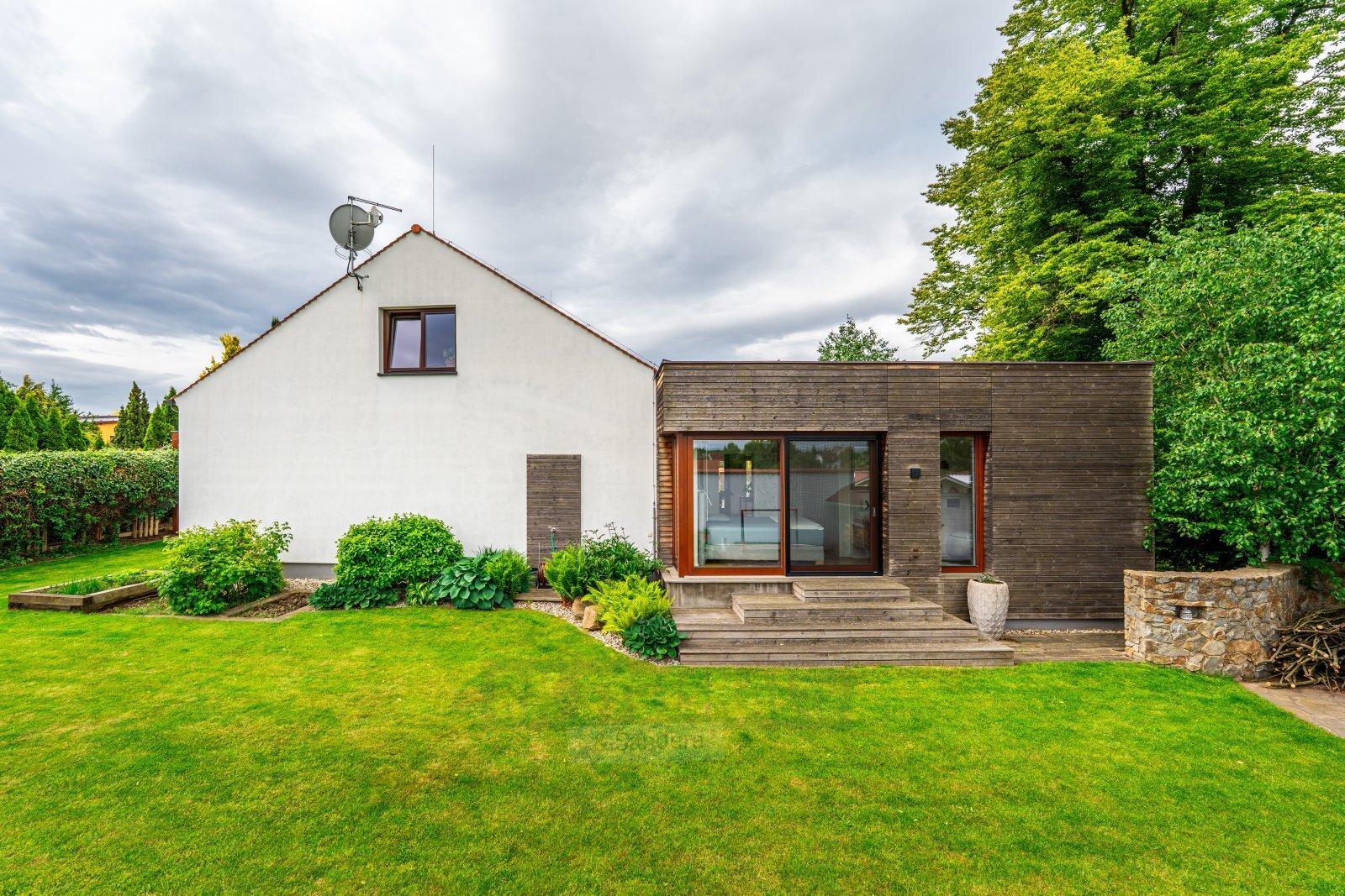 Moderní a důmyslně řešený Rodinný dům s prostornou udržovanou a plně zařízenou zahradou, soubor nemovitostí ve výborném stavu, vhodný k okamžitému užívání.