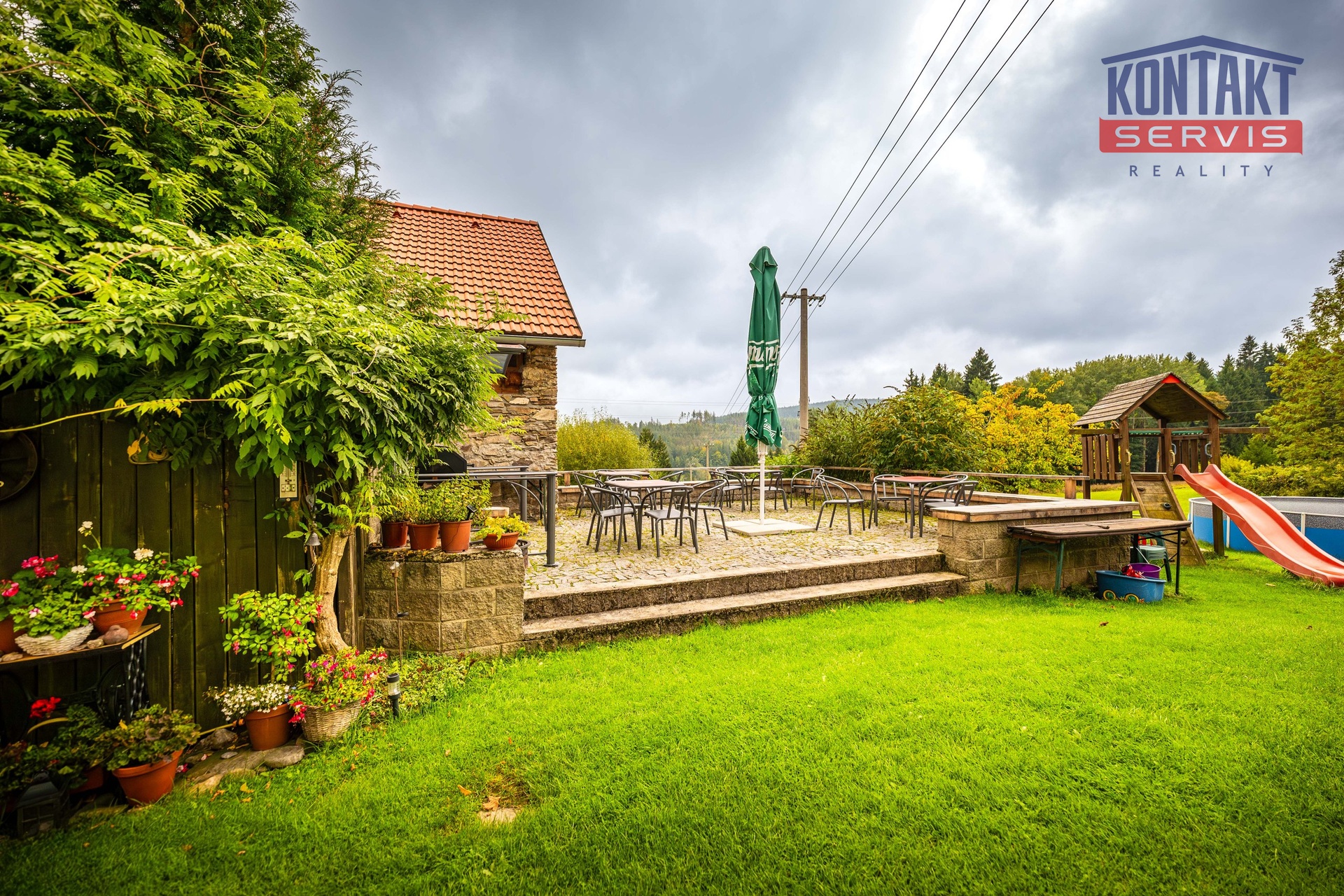 * terasa, bazén, parkování