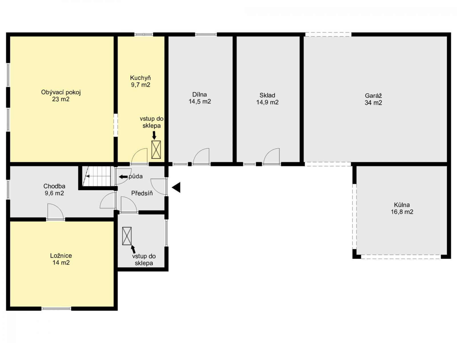 Dům má užitnou plochu 96 m2 a je postaven z kombinace kamene a cihel. Součástí je prostorná garáž ploše 34 m2 a přístřešek navazující na obytnou část a . Výhodou je také prostorné podkroví, které lze upravit do moderního vzhledu s dalšími obytnými místnostmi.