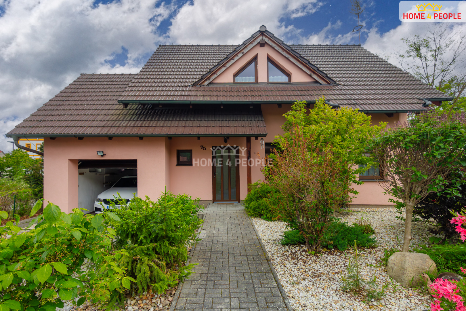 Součástí domu je také garáž s moderními sekčními vraty na dálkové ovládání a dalším úložným prostorem. Parkovat můžete pohodlně i před garáží.