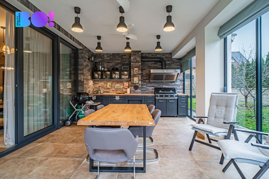 Dům nabízí i příjemné zázemí pro relaxaci a volný čas – k dispozici je sauna a hobby prostor. Na zahradě oceníte letní kuchyni s grilem, ideální pro rodinné akce a setkávání s přáteli, a vzrostlou, pečlivě udržovanou zeleň s automatickým zavlažováním, která minimalizuje nároky na údržbu.