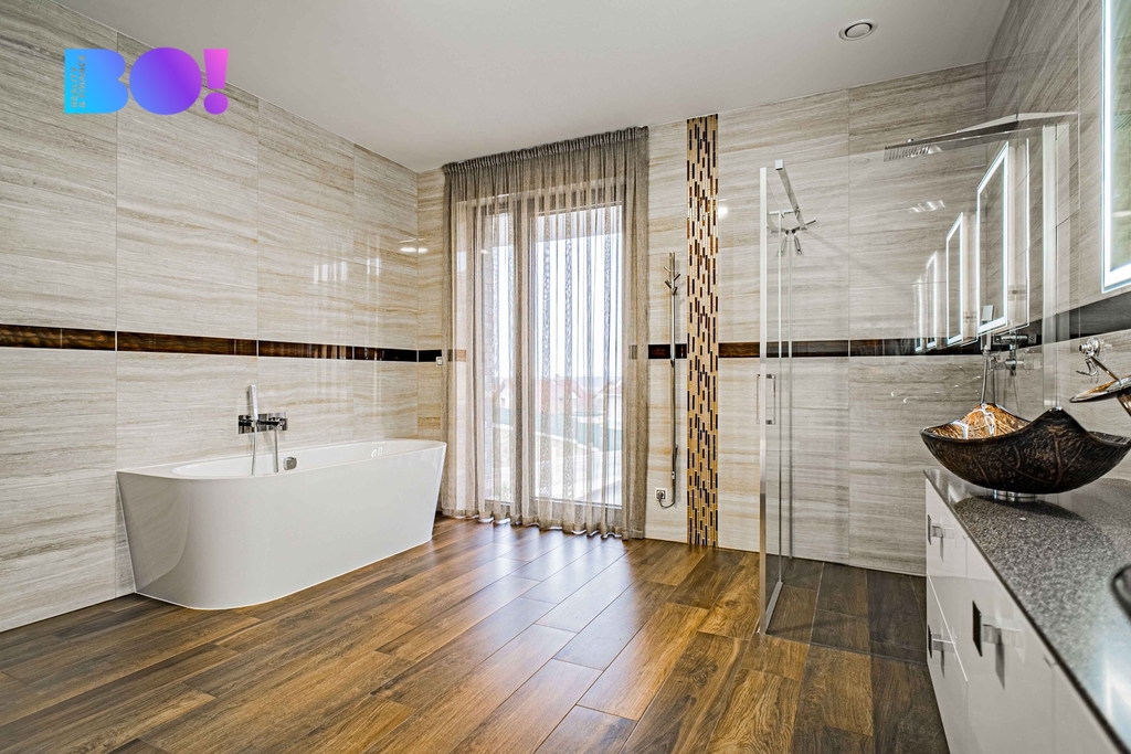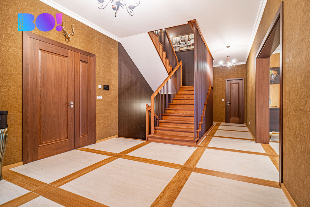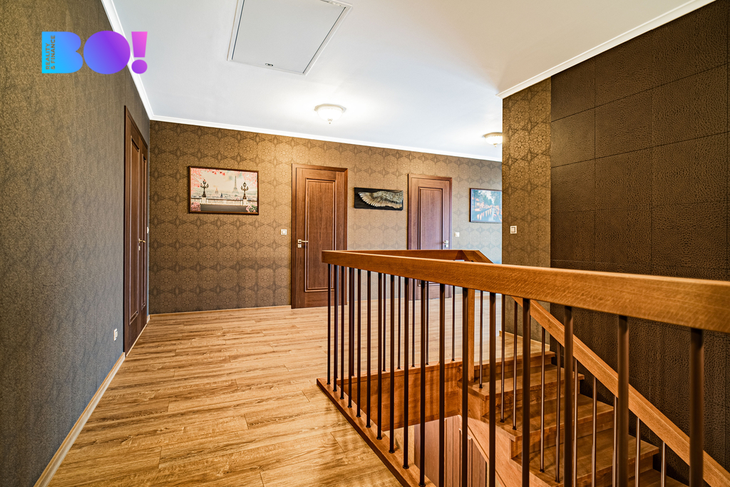 Interiér je postavený na kvalitních materiálech a nadčasovém provedení. Najdete zde masivní dubové schodiště, štukové omítky a praktickou kombinaci laminátových a keramických podlah. Kuchyňská linka značky Noblessa zapadá do konceptu domu, který je navržený pro každodenní rodinný provoz bez kompromisů. O světlo, soukromí i tepelný komfort se starají moderní hliníková okna s exkluzivními venkovními roletami v přízemí a elegantními žaluziemi v patře, včetně možnosti automatizace.