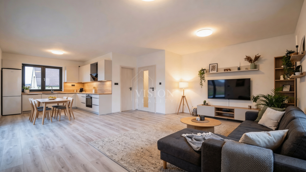 Samozřejmostí jsou moderní technologie a důraz na nízké provozní náklady – podlahové vytápění, kvalitní okna s trojskly a příprava na další úsporná řešení.
