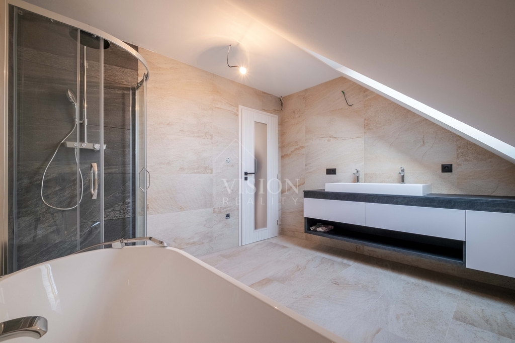 Samozřejmostí jsou moderní technologie a důraz na nízké provozní náklady – podlahové vytápění, kvalitní okna s trojskly a příprava na další úsporná řešení.