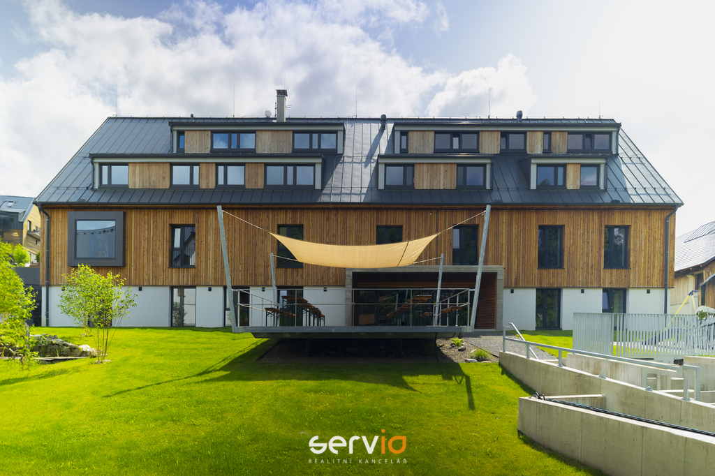 Dále zde nabízíme ke koupi další 2 nadstandardní horské apartmány (1+1) pro rodinou rekreaci, ale i jako výhodnou investici. Objekt se nachází cca 350 metrů od sjezdovky s vlastním parkováním, které je i možno zakoupit do výlučného vlastnictví. Dům je vybaven wellness centrem (sauna, relaxační místnost, vířivka), společenská místnost s výčepem, dětský koutek, místnost pro boxy na osobní věci. Apartmány jsou vhodné i jako investice na pronájem, rádi vám pomůžeme i s případným pronájmem.