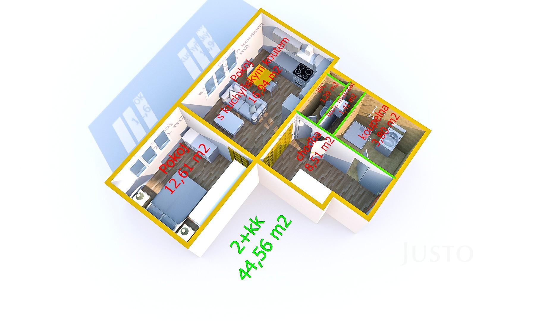 Dispozice bytu:2+kk