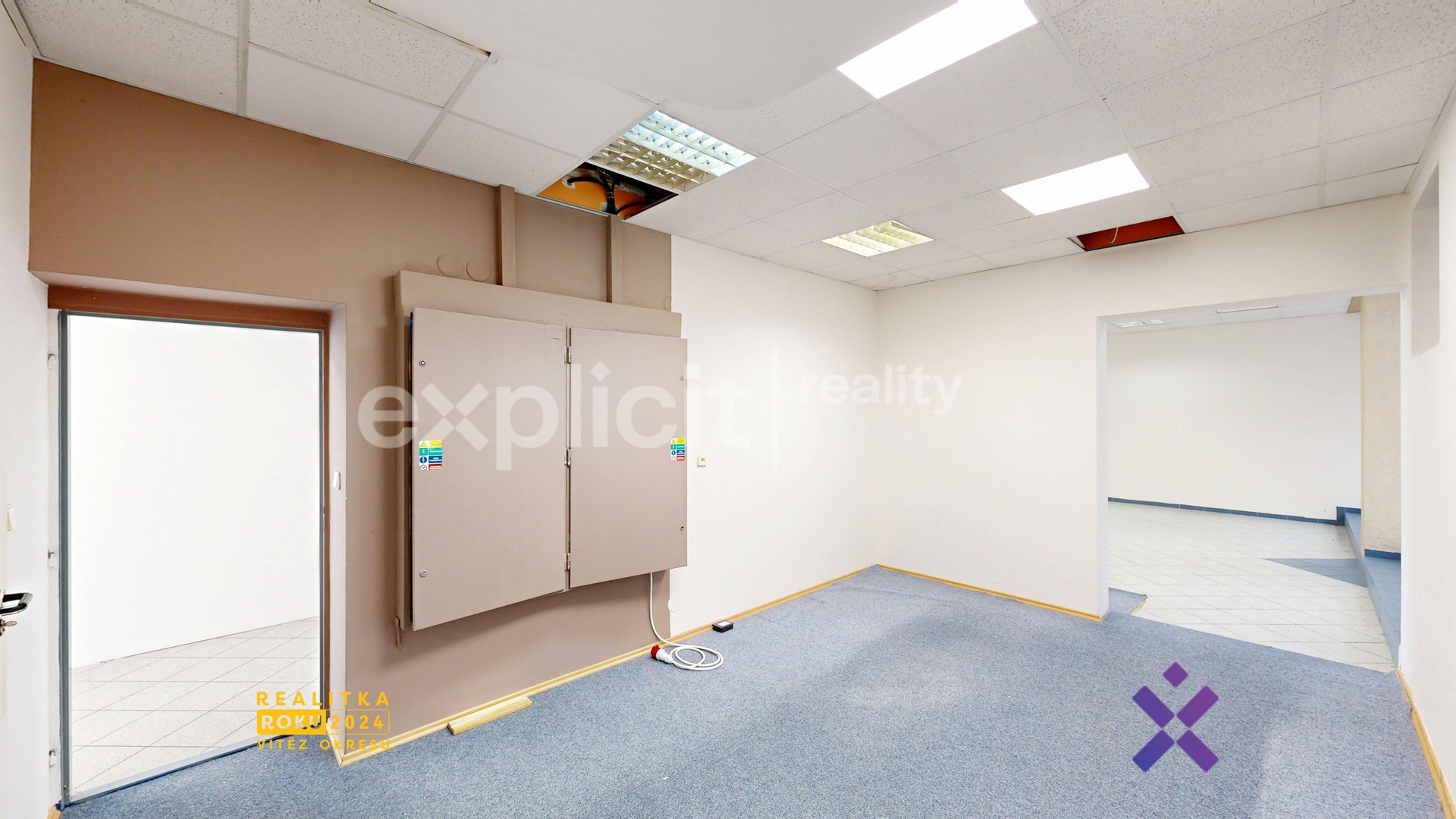 Interiér působí světlým a vzdušným dojmem, jednotlivé místnosti nabízí variabilní využití, ať už pro provozovnu, kancelářské nebo skladové zázemí nebo jiný účel podle potřeb nového nájemníka.