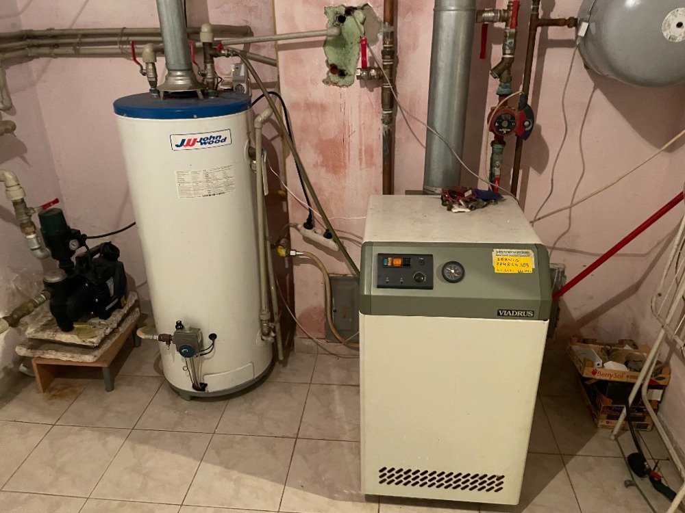 Jedná se o řadový vnitřní objekt rodinného domu, částečně podsklepený, se dvěma nadzemními podlažími. Je zděný, střecha je sedlová s krytinou z betonové tašky, bleskosvod je instalován, klempířské prvky jsou úplné, plechové. Fasáda je vápenná hladká. Okna jsou plastová, vnitřní dveře jsou dřevěné do obložkových zárubní, podlahy jsou z dlažby a laminátu. V domě jsou dva byty. V 1. nadzemním podlaží dispozice 2+kk, v 2. nadzemním podlaží pak 3+kk. WC jsou splachovací, koupelny s vanou, sprchový kout, umyvadla. Vybavení kuchyní je standardní, linky, sporáky. Vytápění je ústřední s plynovým kotlem, teplá voda je z boileru a plynového ohřívače, stav je průměrný, celkové vybavení také průměrné. Dům je napojen na elektřinu, veřejný vodovod, kanalizaci a plyn. U domu se dále nachází vedlejší stavba a porosty.