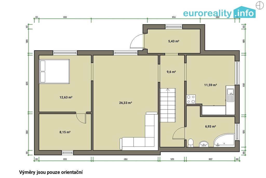 Celková podlahová plocha činí cca 165 m², z toho obytná část cca 80 m², zbytek tvoří půdní prostor, který nabízí možnost budoucího rozšíření obytné plochy dle vlastních představ.