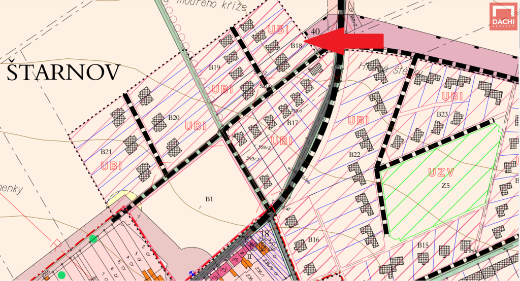 Pozemek dle územního plánu určen k bydlení v rodinných domech (Z01)