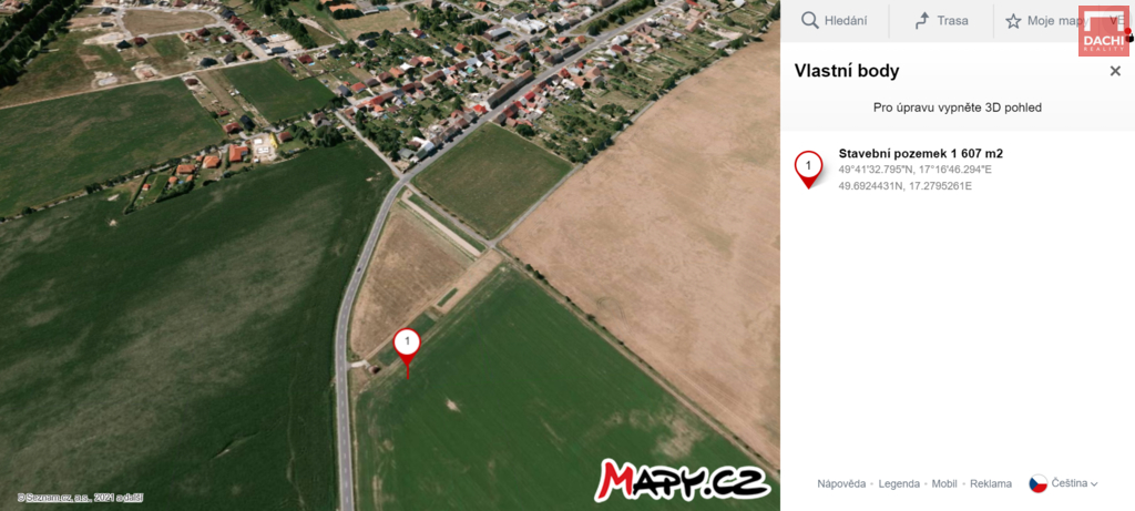 Celková výměra 1607 m² – ideální pro výstavbu rodinného domu se zahradou
