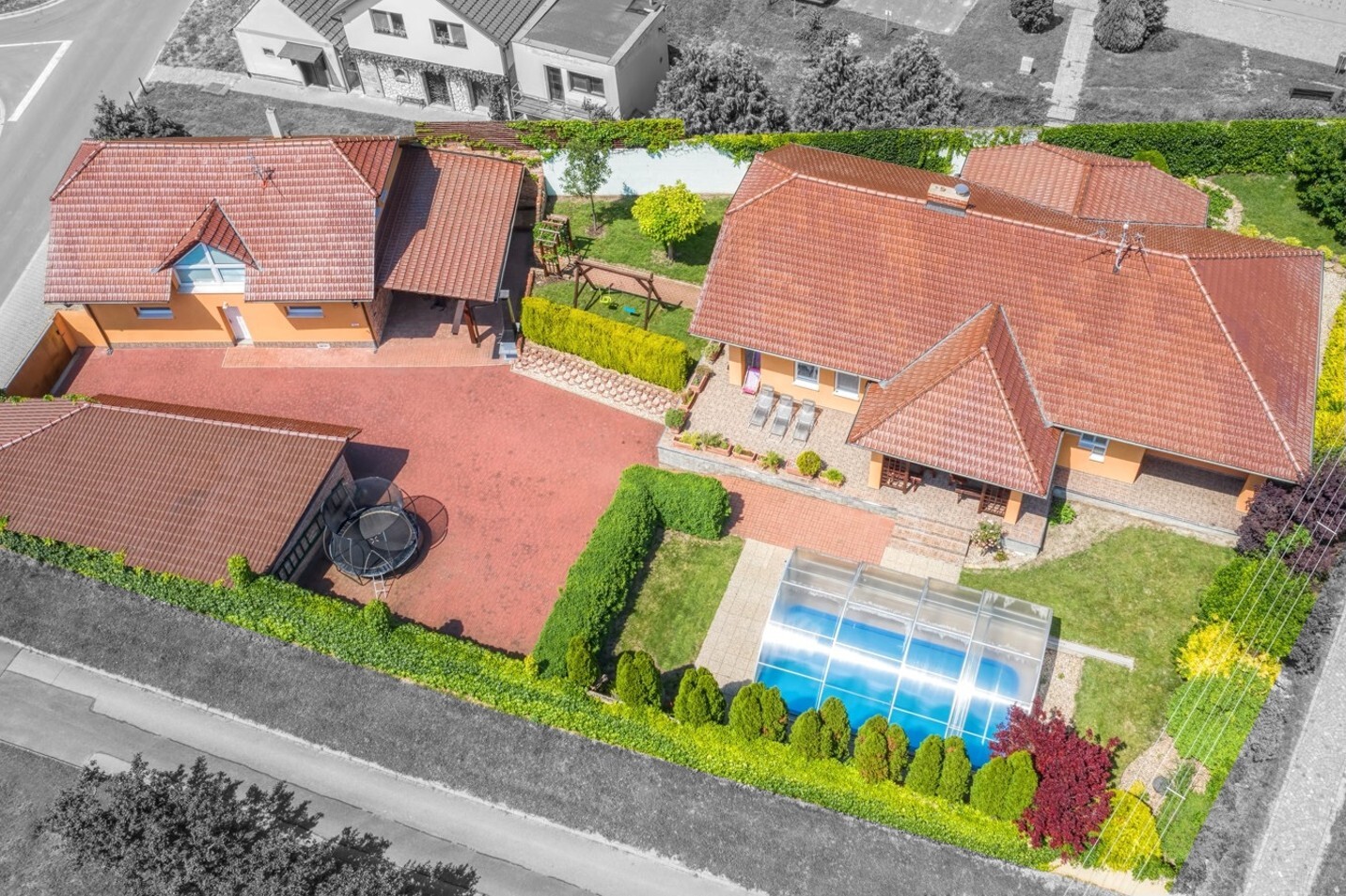Prodej RD 4+1, s apartmánem 3+kk, dvougaráž, bazén, zahrada, Starovičky