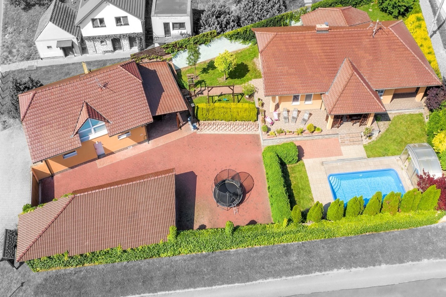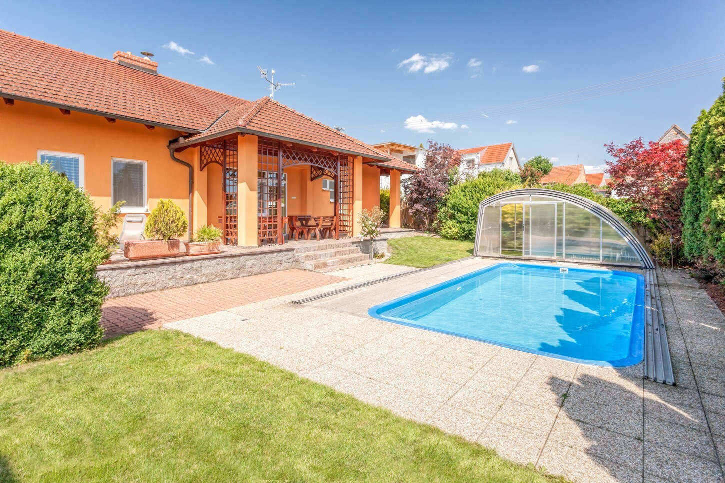V letních měsících určitě rádi využijete k ochlazení venkovní bazén a k opalování terasu, kde najdete naprosté soukromí.