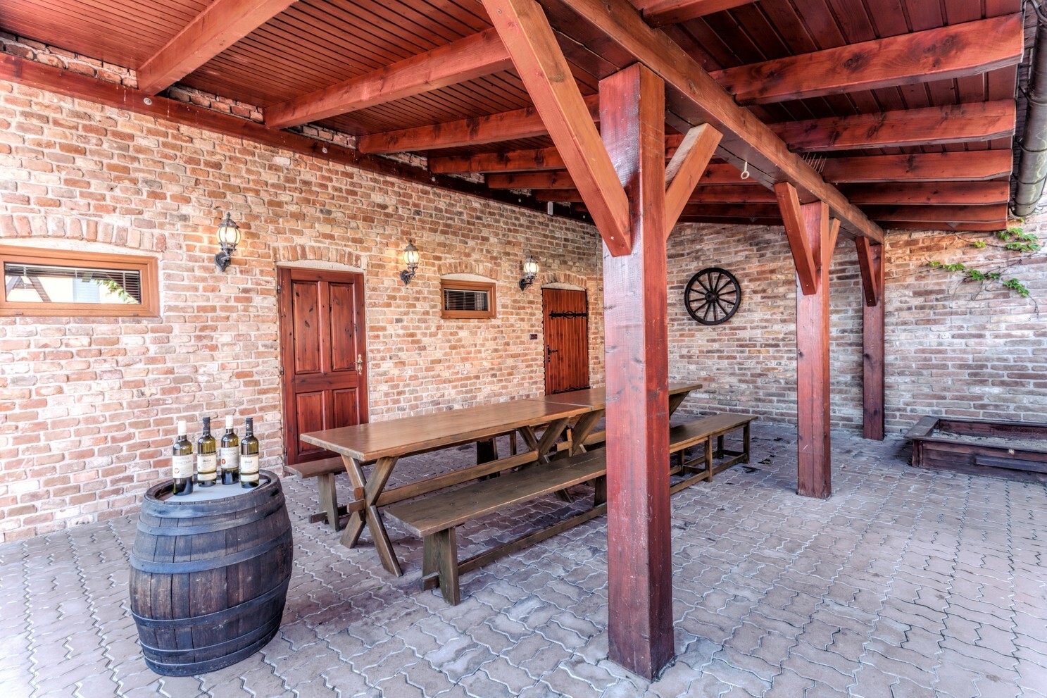 Ve dvoře se dále nachází technická zastřešená místnost s možností parkování pro jeden osobní automobil.