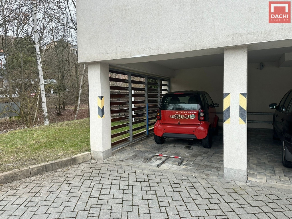 K bytu náleží kryté parkovací stání přímo u domu a sklepní kóje, které poskytují další úložný prostor.