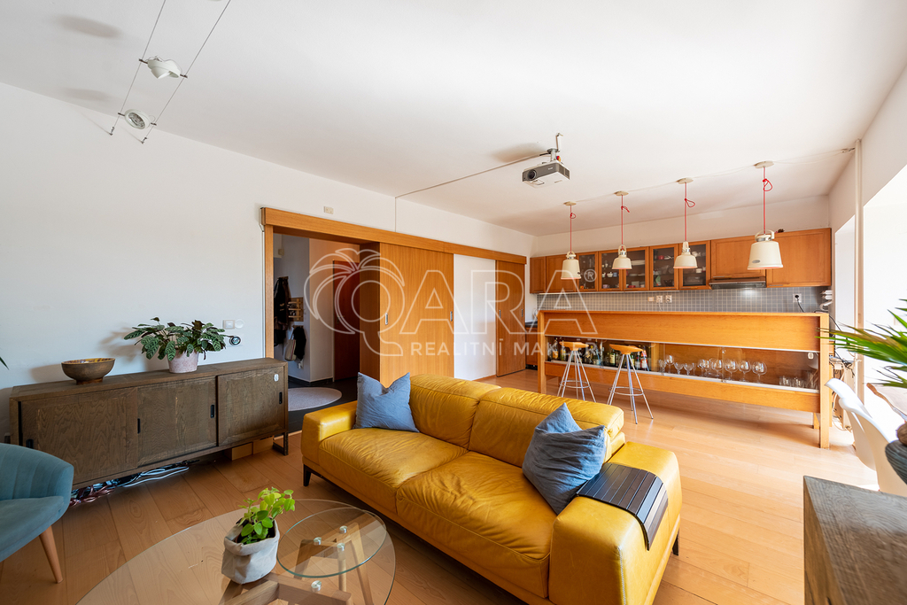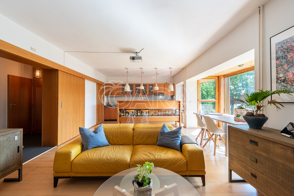 Nabízíme k pronájmu moderní prostornou vilu, která se nachází ve vyhledávané lokalitě pár minut od Prahy 6. Architektura a celkový koncept domu byly v roce 1998 oceněny titulem Dům roku. Zařízení nábytkem na fotkách neodpovídá současnému stavu, v domě je pár kusů základního nábytku.