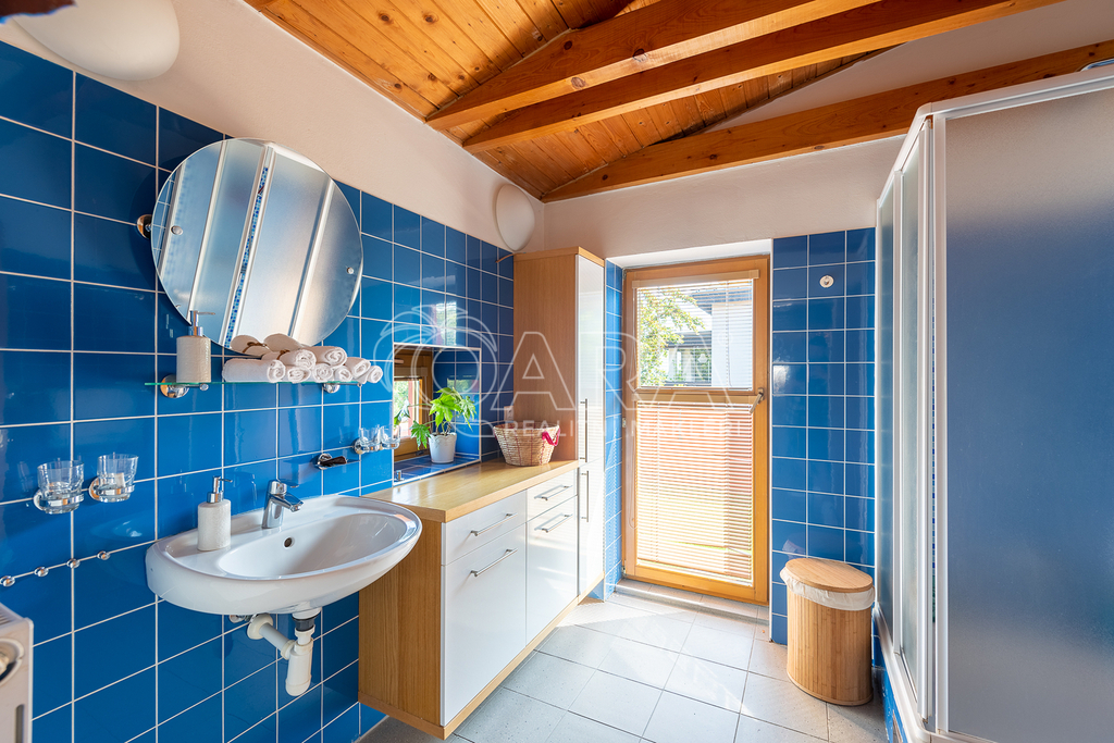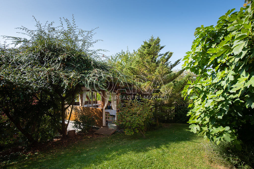 Součástí domu je rovněž garáž (27 m2). Na zahradě je vystavěný altán, kdy dole je úložný prostor a nahoře letní kuchyň s kouzelným posezením.