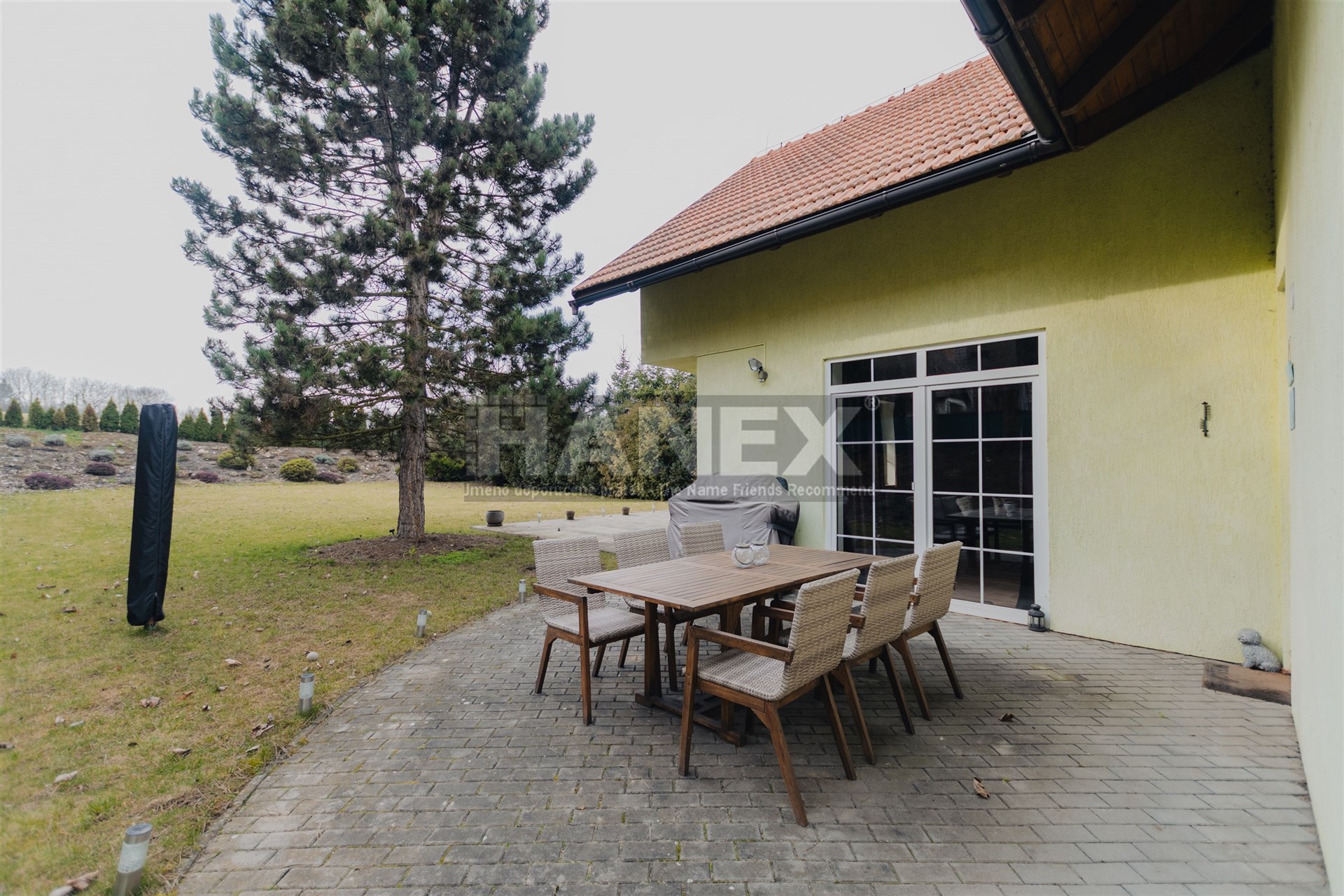 Stylový rodinný dům se 4 ložnicemi, rozlehlou zahradou a terasami v bezpečném uzavřeném areálu, jen pár minut jízdy od Prahy. Komplex vybudovaný v roce 1997 se skládá ze 4 domů a je přístupný po soukromé komunikaci. Společný bazén a tenisový kurt představují skvělou přidanou hodnotu této klidné lokality.