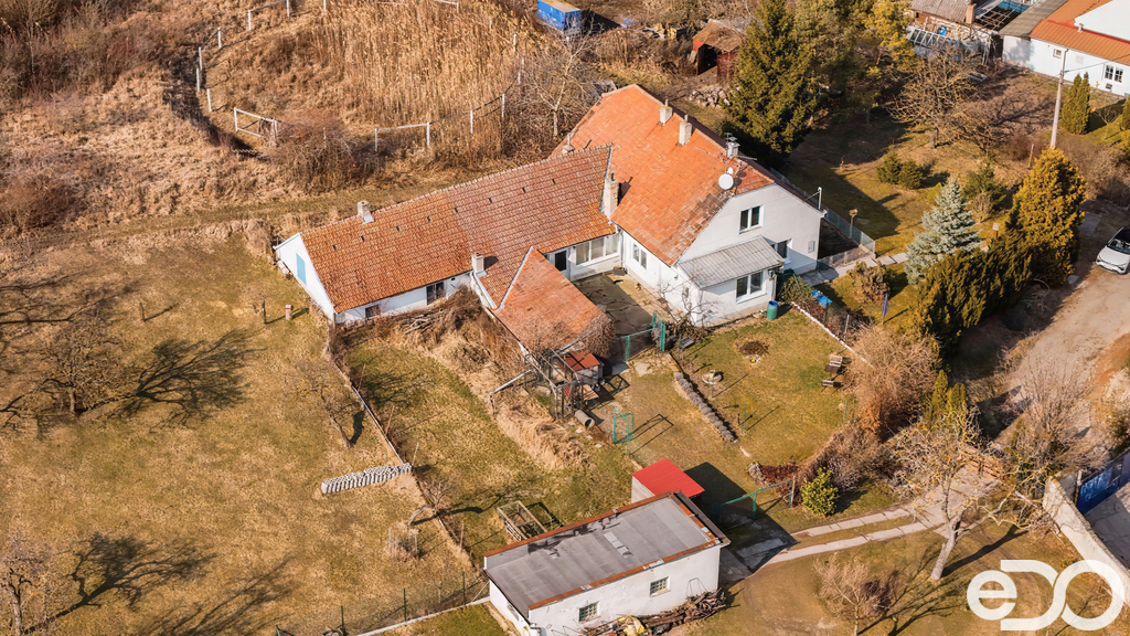 Dům stojí na pozemku o výměře přibližně 705 m² a nabízí uzavřený dvůr poskytující dostatek soukromí i navazující zahradu. Ve dvoře se nachází hospodářské zázemí a vedlejší stavby, které dnes slouží jako praktické technické zázemí domu. Zároveň však představují zajímavou příležitost – jejich případným odstraněním může vzniknout větší a ucelený prostor zahrady. Budoucí majitel tak získává možnost dotvořit venkovní část pozemku přesně podle svých představ.
