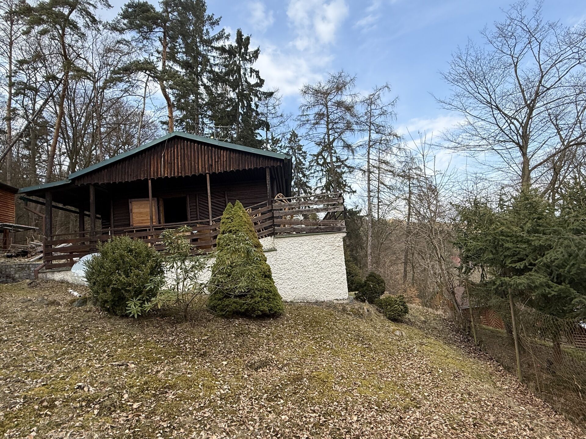 K prodeji nabízím dřevěnou krásnou chatu s číslem evidenčním, vlastní studnou a nádherným výhledem na údolí Vltavy, postavené na mírně svažitém vlastním pozemku o celkové výměře 740 m2, nacházející se na kraji obce Třebenice u obce Slapy. Chata se nachází na kraji lesa.