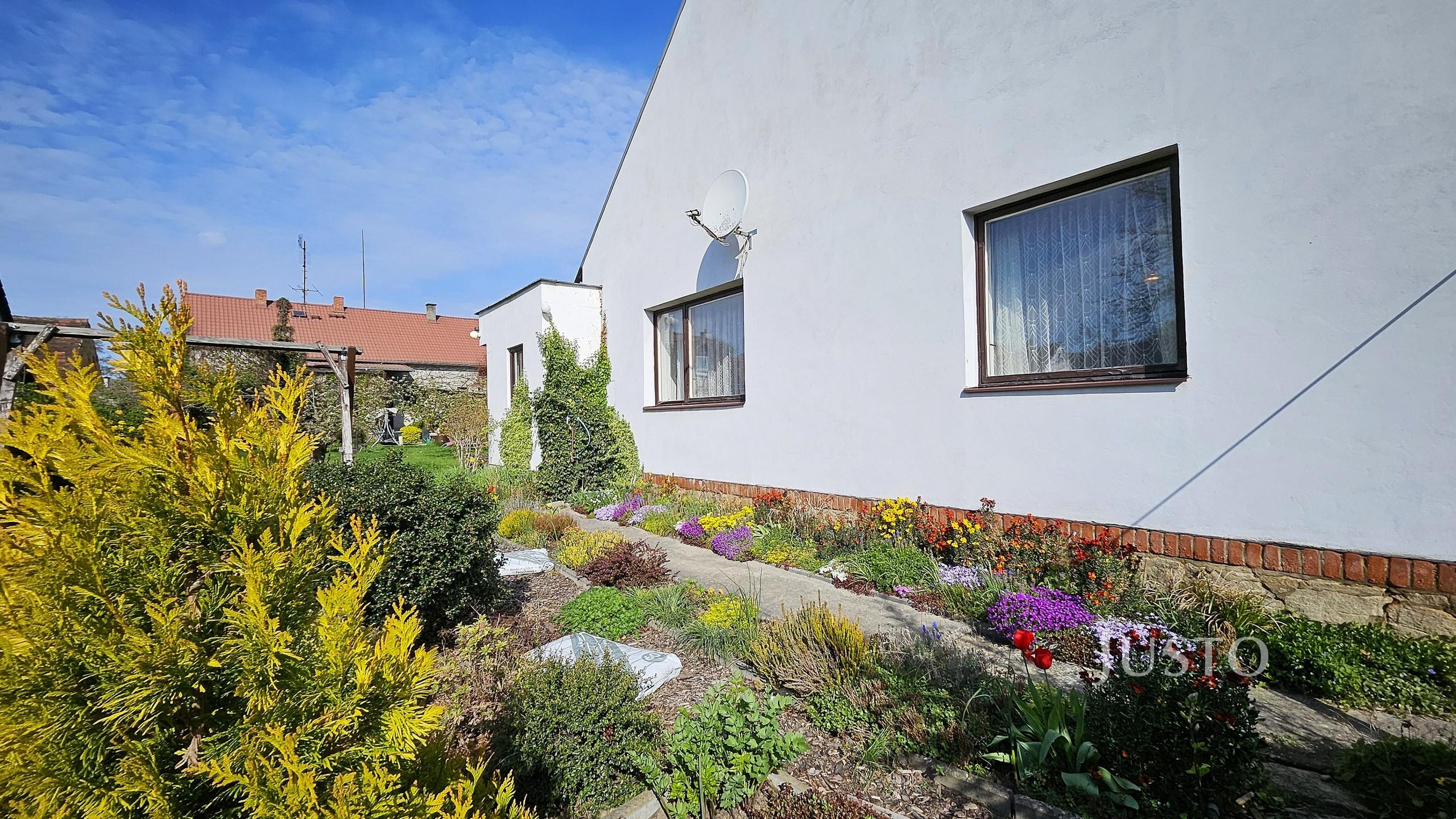 K nemovitosti náleží příjemná zahrada se skleníkem a praktickým zahradním domkem, ideální pro odpočinek i zahradničení.