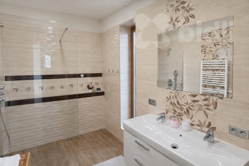 Dům dále disponuje třemi prostornými ložnicemi, dvěma elegantními koupelnami, samostatnou šatnou a technickou místností. Vytápění je řešeno elektrickým podlahovým systémem s celoživotní zárukou, který spolu s dalšími technologiemi přispívá k mimořádné energetické efektivitě.